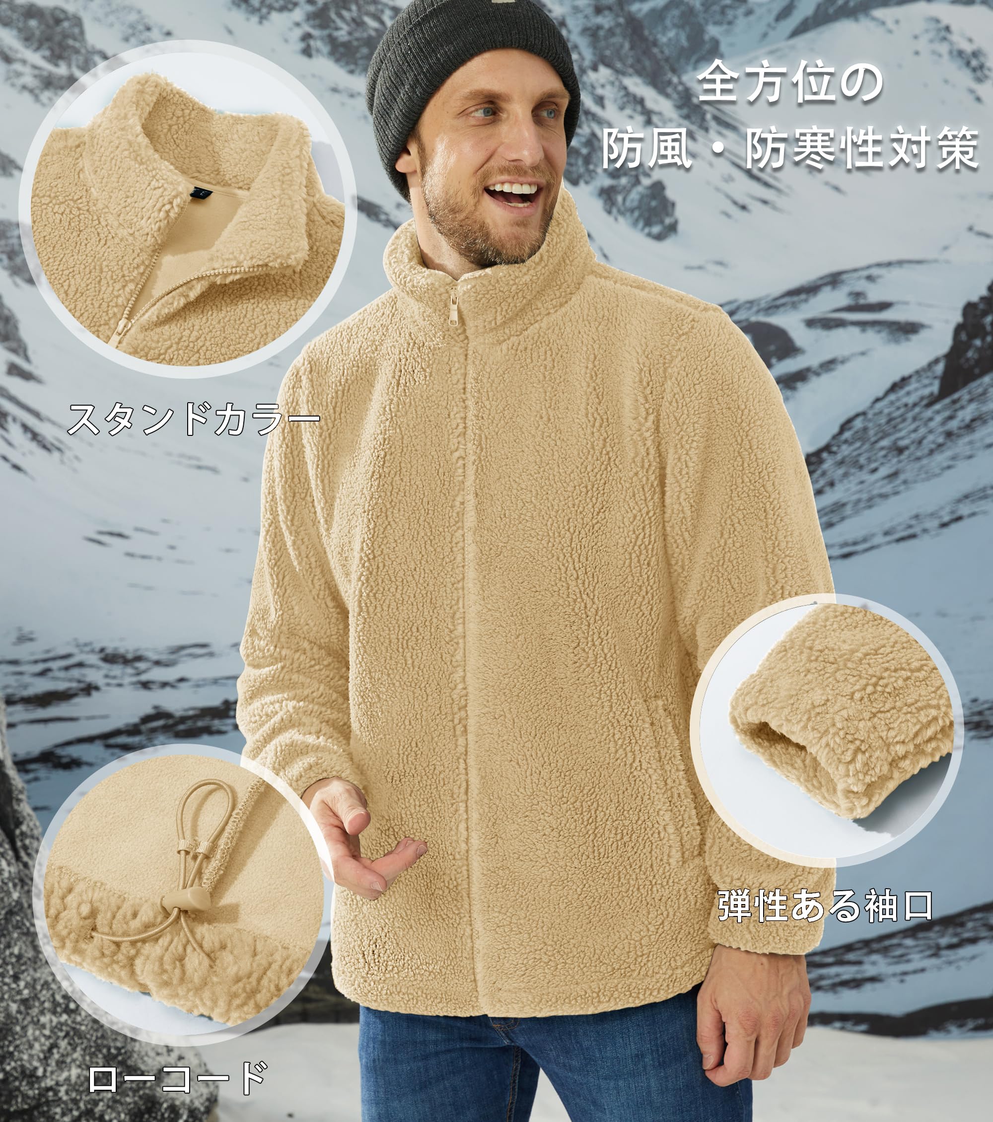 [KEFITEVD] ボアジャケット メンズ 厚手 防風 フリースジャケット 大きいサイズ 保温 防寒着 釣り スタンドカラー フルジップ 上着 暖かい アウター カジュアル 春秋冬