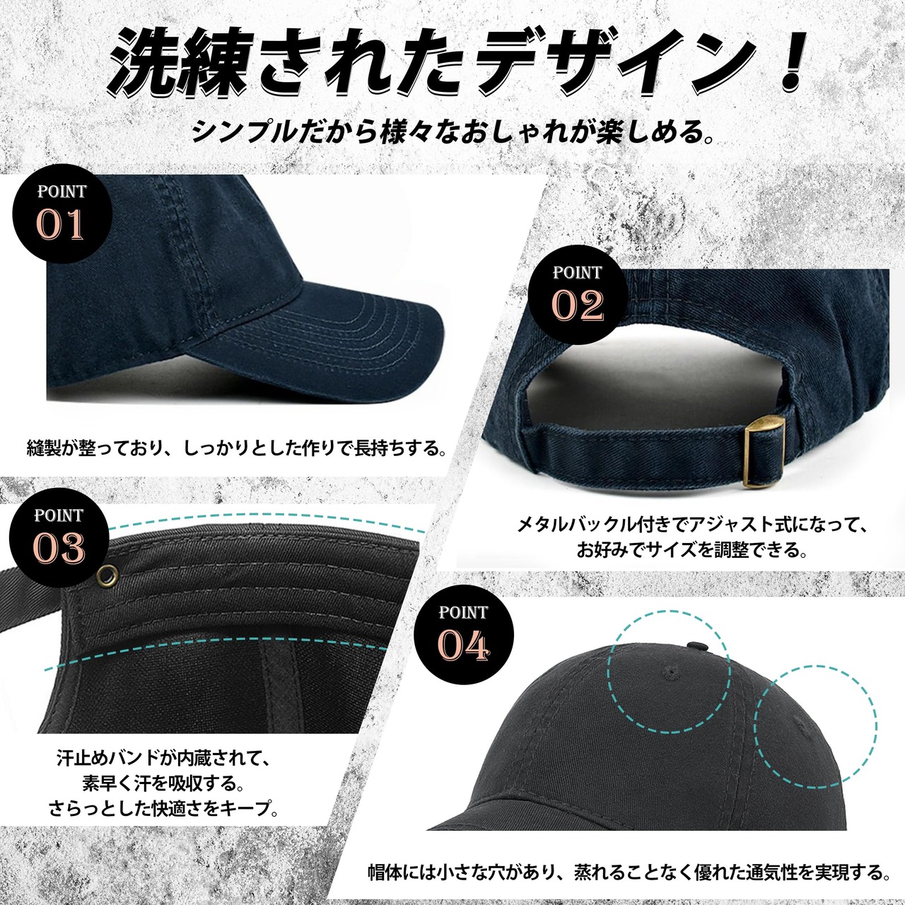 【調整可能な大きいサイズ 帽子】頭の大きい方に向けてご用意したキャップ メンズです。後ろのベルトはメタルバックル付きでアジャスト式になっており、頭周りは58cm-65cmまで調整可能です。自分にぴったりなサイズで快適に着用できます。つばの長さは約8cm、深さ約13cmで、日本人の頭がたにフィットし、日差しからしっかりと守ります。