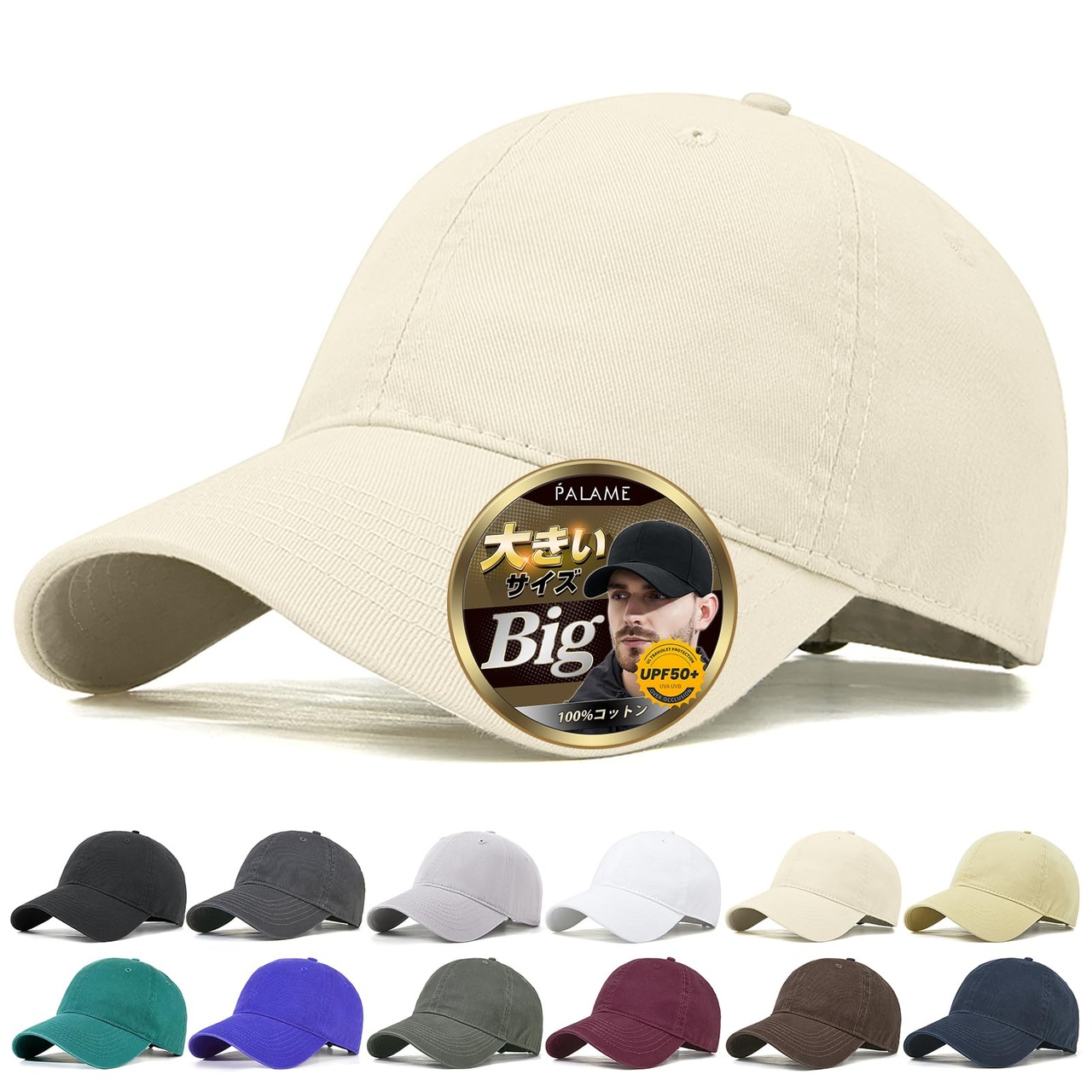 [PALAME] キャップ メンズ レディース 大きいサイズ 帽子 【特大58-65cm・美シルエット】 【UPF50+・快適なかぶり心地】 UVカット帽子 紫外線対策 綿100% 深め 小顔効果 無地 ヴィンテージ風 野球帽 アウトドア 調整可能 男女兼用