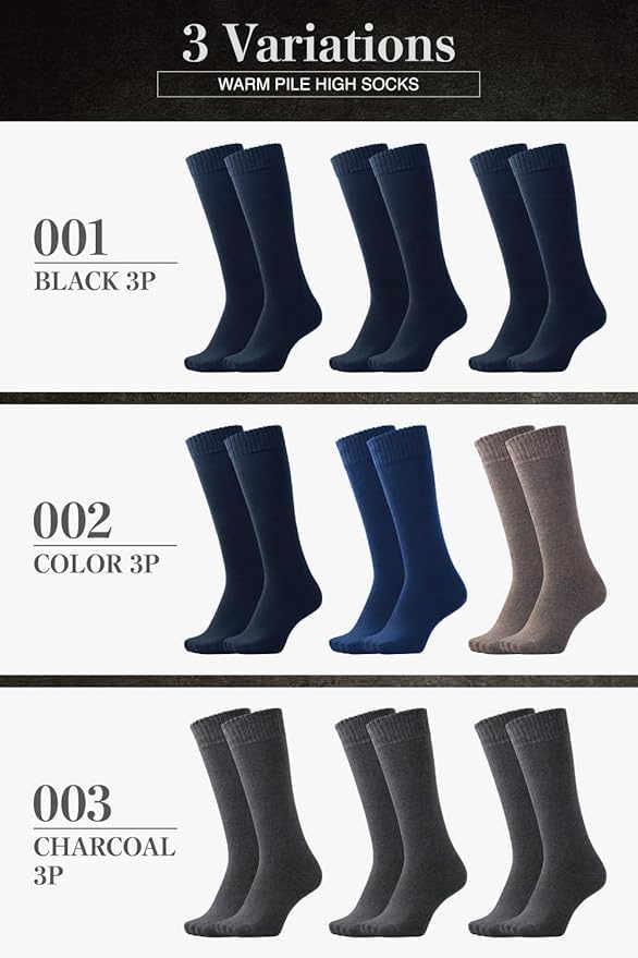 [PIENILO] ハイソックス メンズ 冬 靴下 厚手 ルームソックス 防寒 ビジネスソックス ロング丈 黒 25-27cm 3足セット