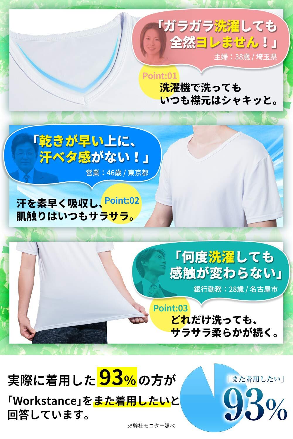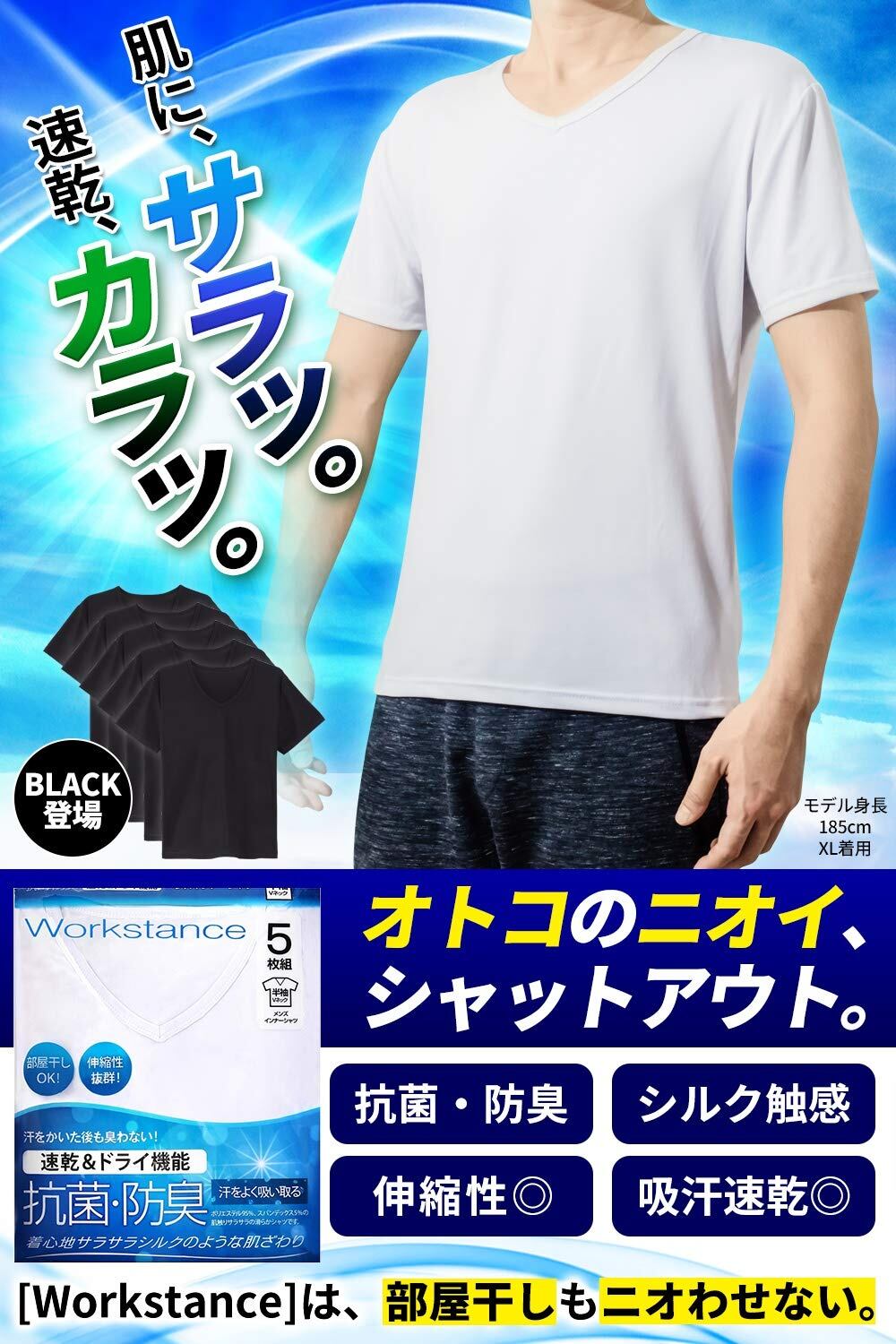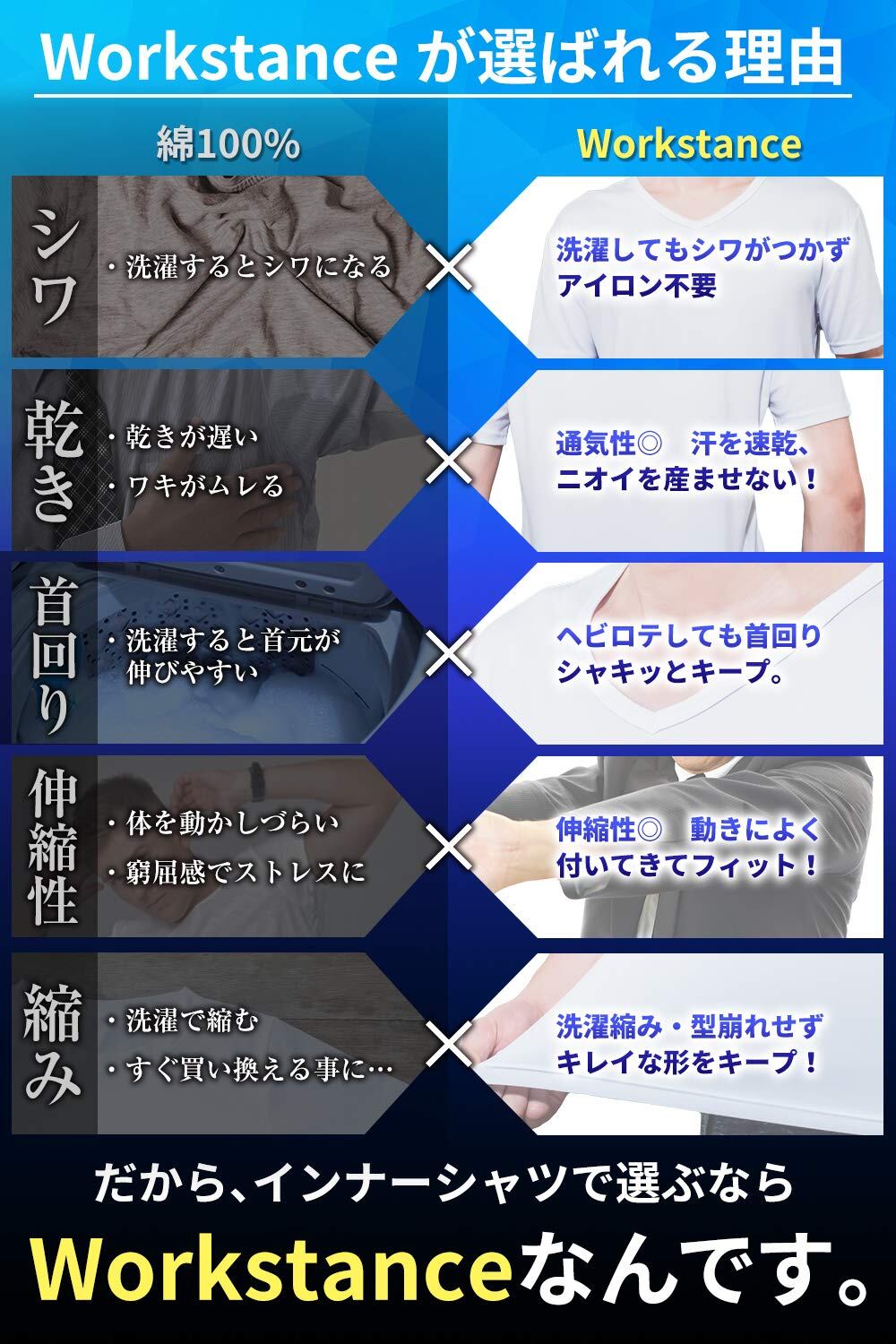 【WORKSTANCE】は抗菌防臭に優れた深めのVネックインナーシャツです。汗を掻いた後の嫌なニオイをシャットダウンし、常にサラサラ状態をキープします。