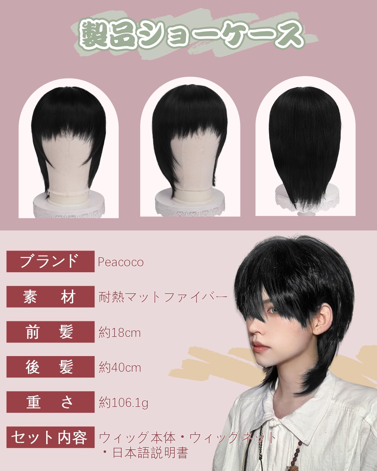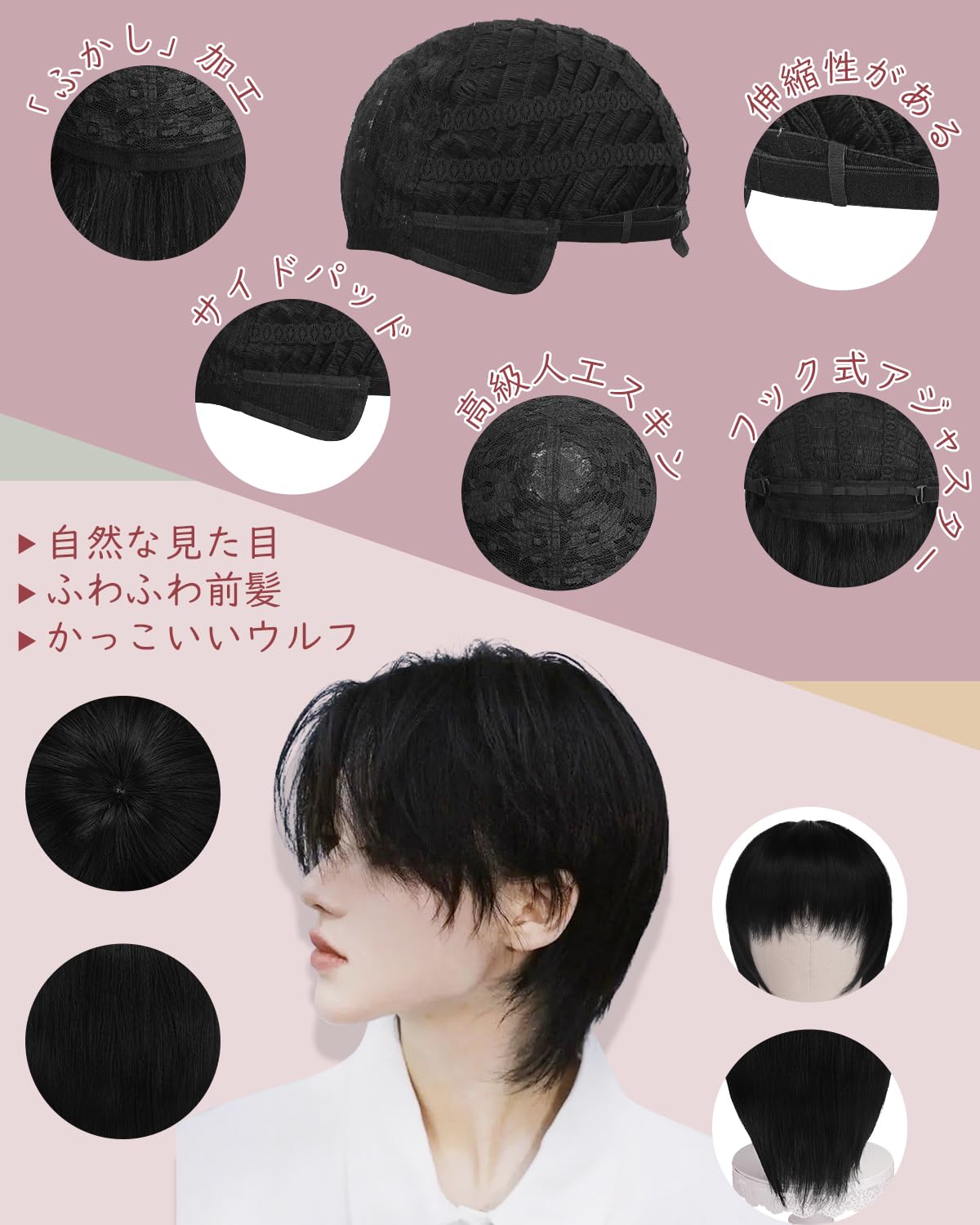 【新着】Peacoco ウィッグ メンズ 男装 ウルフ カツラ イケメン コスプレ イメチェン 普段使い 金髪 黒髪 ピンク 男女兼用 自然 小顔 耐熱 人気 派手髪 假? バレない ネット付 | GIGATERA