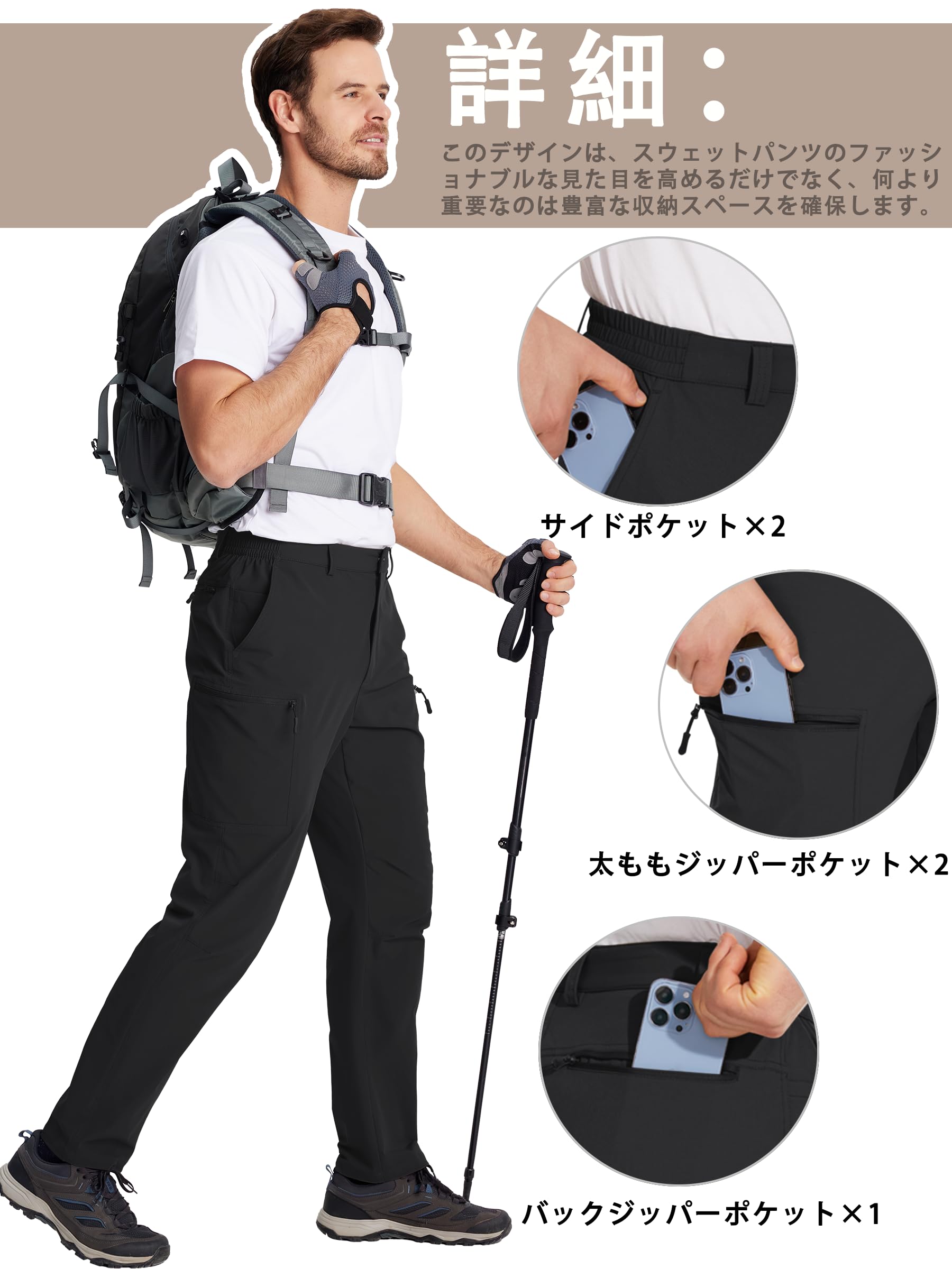 【より耐摩があり快適な生地】登山パンツは高品質な生地を使用し、優れた耐摩耗性により、岩や木の枝などの物体の摩擦に耐え、肌を擦り傷や損傷から保護します。肌に触れる感触がより快適な着用体験を提供します。
