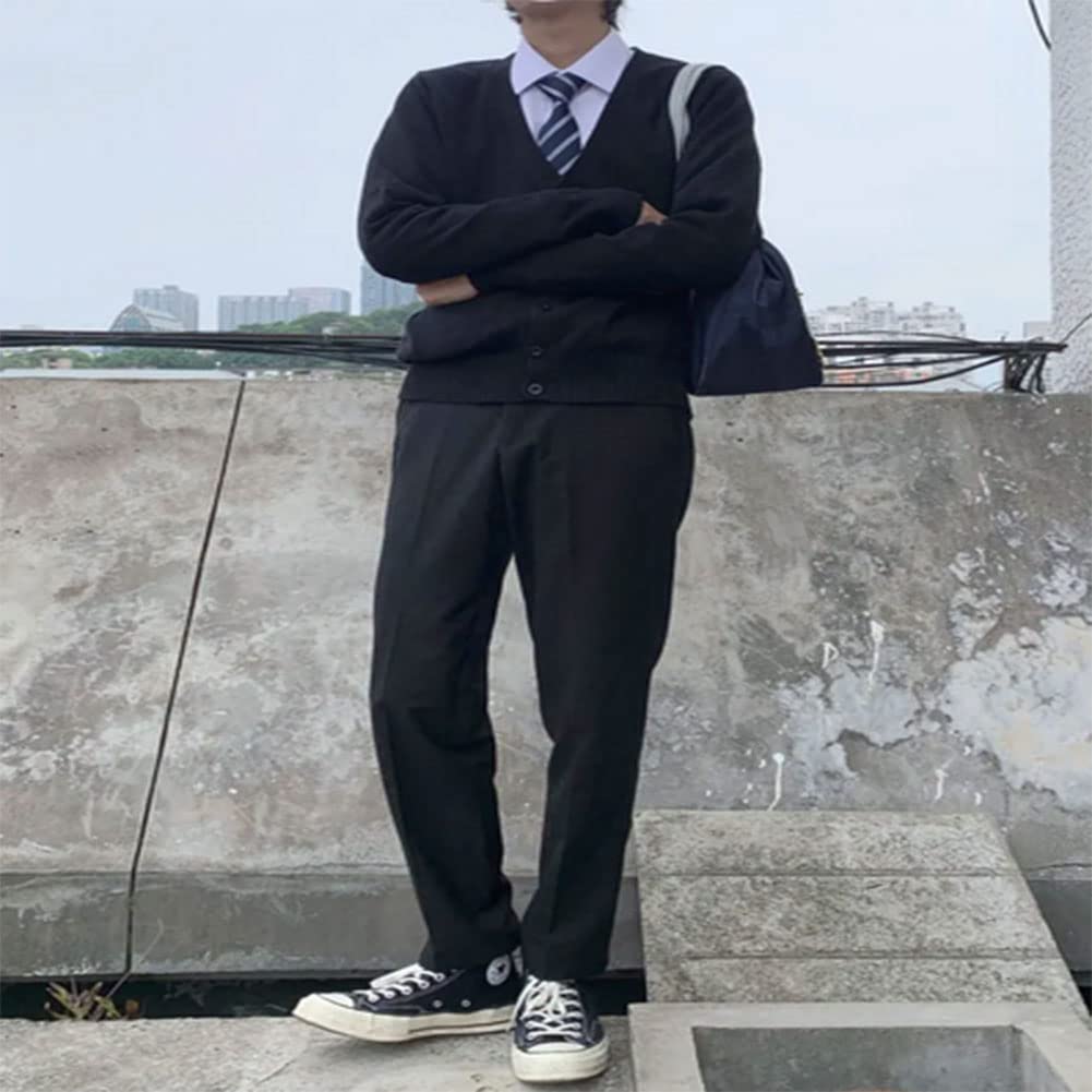 [Wowcarbazole] カーディガン 学生 メンズ Vネック スクールカーディガン 男 セーター ニット ビジネス 綿 無地 春秋冬