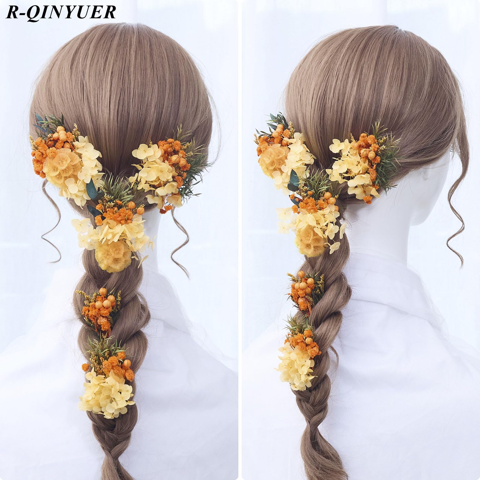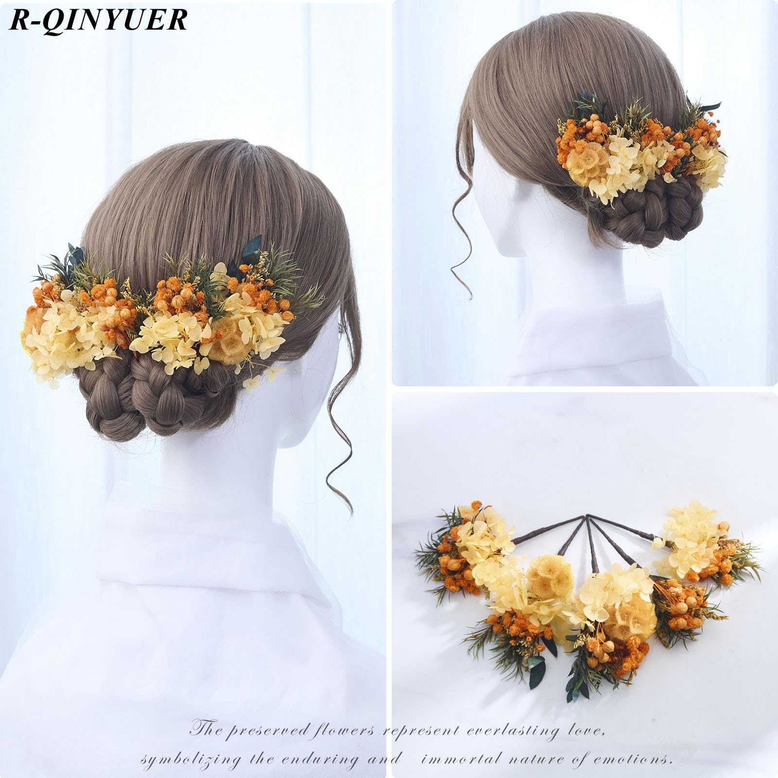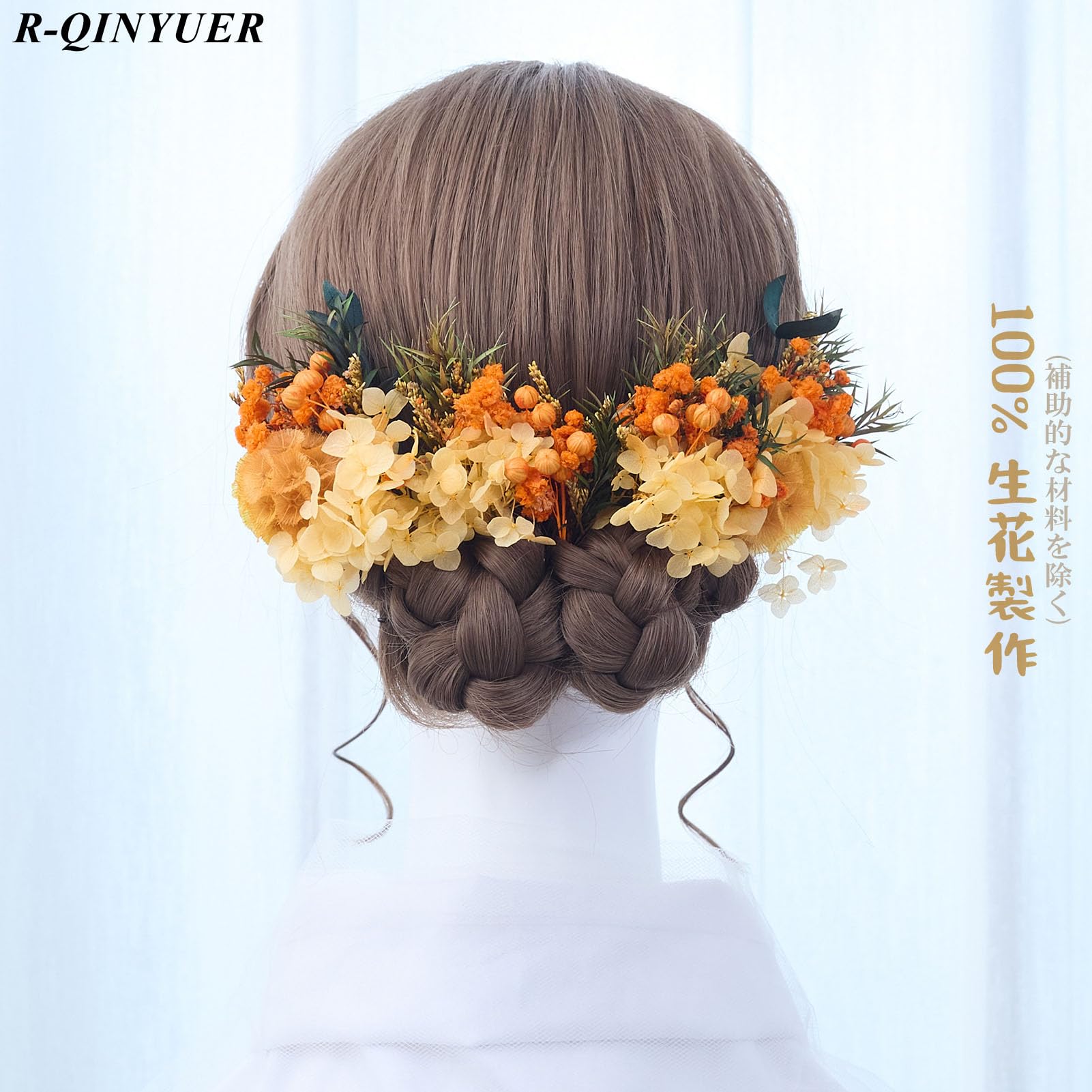 [R-QINYUER] 髪飾り ヘッドドレス プリザーブドフラワー ウェディング ブライダル ドライフラワー 花飾りヘアアクセサリー セットアップ 祭り 花火大会 成人式 結婚式 卒業式 七五三 浴衣 前撮り