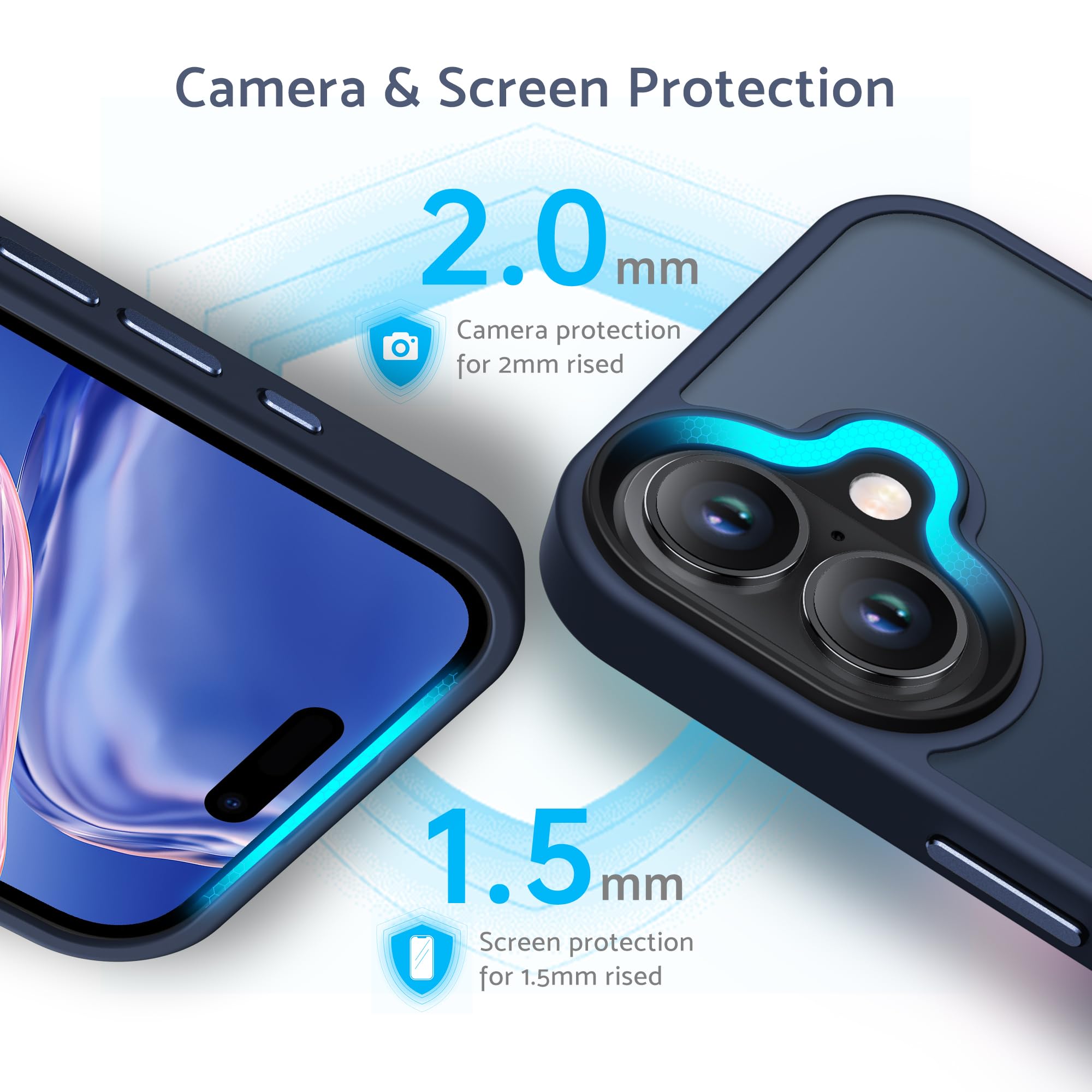 Anqrp iPhone16 用 ケース 半透明 マット 耐衝撃 滑り止め 米軍MIL規格 指紋防止 スマホケース アイフォン16 ストラップホール付き ワイヤレス充電対応 アイホン16カバー 6.1インチ ブルー