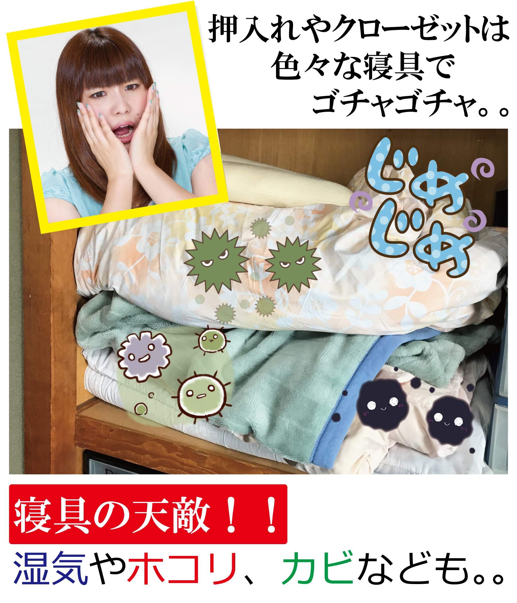 【カンタン・コンパクト収納】押し入れやクローゼットで崩れたり、かさばったりする掛け・敷布団をスッキリ収納!布団を畳んで入れるだけなのでカンタンです