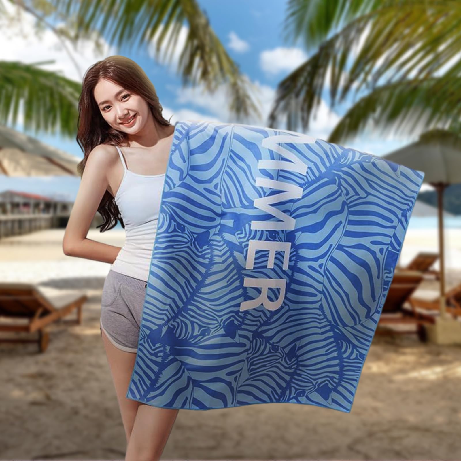 【セール】【Charming Decoration】ビーチタオル プールタオル セームタオル ビーチマット マイクロファイバー 大判 砂がつかない 速乾 吸水 薄型 柔らかい 軽量 コンパクト 持ち運び便利 ビーチブランケット 海水浴 プール 旅行 温泉用タオル (ブルーの夏) | GIGATERA