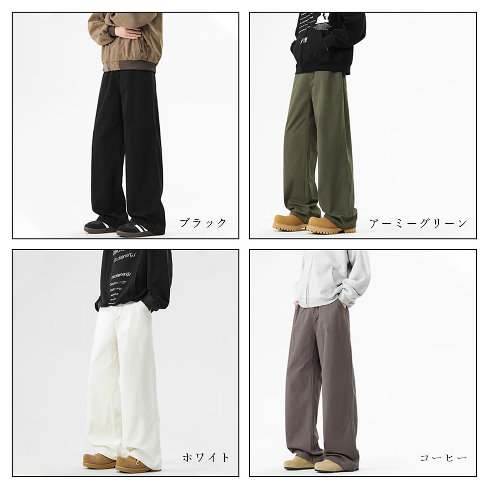 カジュアルでスタイリッシュなデザイン:無地のシンプルなデザインと落ち着いたカラー(ブラック、ミリタリーグリーン、コーヒー、ホワイト)が特徴で、どんなシーンにも合わせやすいです。チノパン メンズとしても普段使いに最適です。