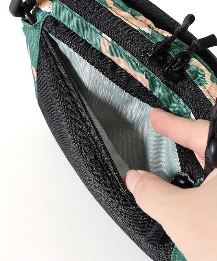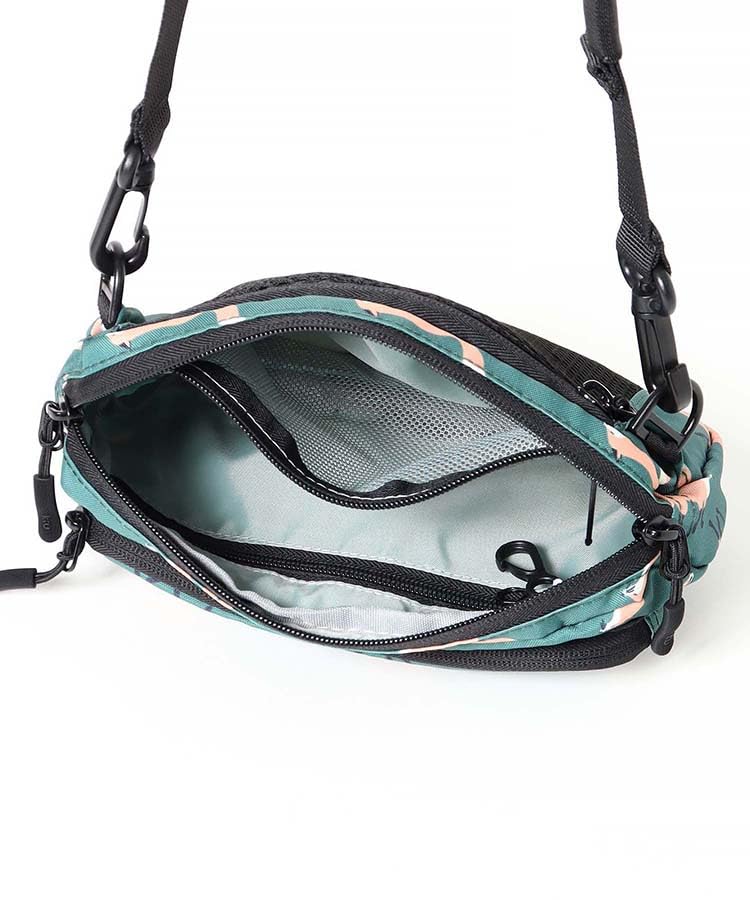 『KiU』とBleu Bleuetがコラボしたグッズ「KiU and BleuBleuet」 撥水・防水加工が施された「KiU」のミニショルダー。 コンパクトながらお財布やスマホなどお出かけに必要な持ち物がしっかり収まるサイズ。 外側と内側に2つずつポケットは貴重品や細々した小物類の収納にとても便利。 鍵の紛失を防ぐキーカラビナ付きなのも嬉しいポイントです。 ショルダーバッグとしてはもちろんウエストポーチとしても使える2WAY仕様なので、普段使いからレジャーなど様々なシーンに大活躍します◎ カラフルで豊富なカラーバリエーションがそろっています。 【ポケット】 外側:ファスナーポケット×2 内側:ファスナーポケット×2 ※こちらの商品は総柄生地のため、使用する場所により柄の出方が多少異なる場合がございます。あらかじめご了承下さいますようお願い申し上げます。 ※本品に付いているご注意書きをお読みの上ご使用ください。