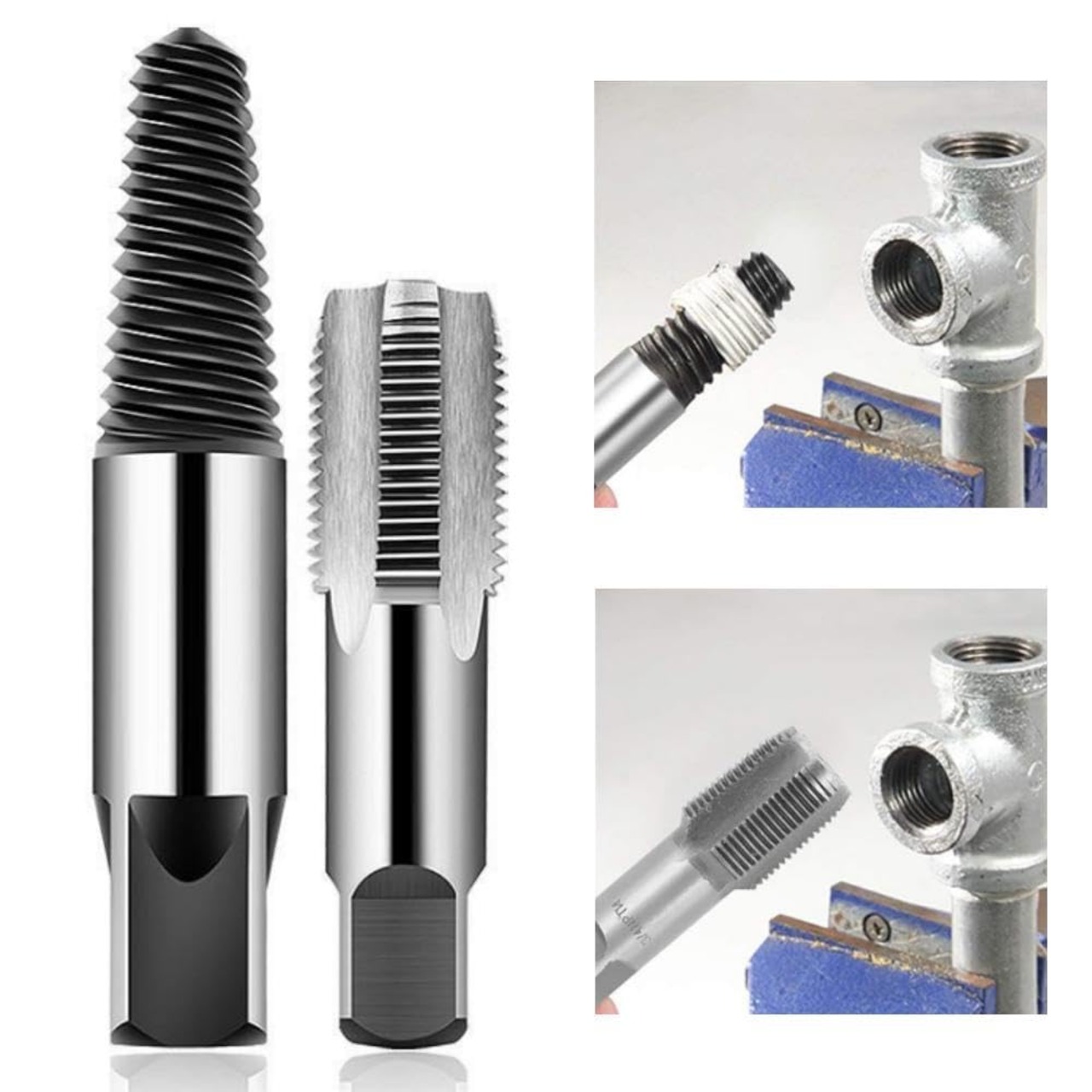 スクリューエキストラクター と パイプタップ 配管用 折れたビス抜き と ネジ切り修正 高炭素鋼 管用タップ と ネジ抽出器 (1/2インチ)