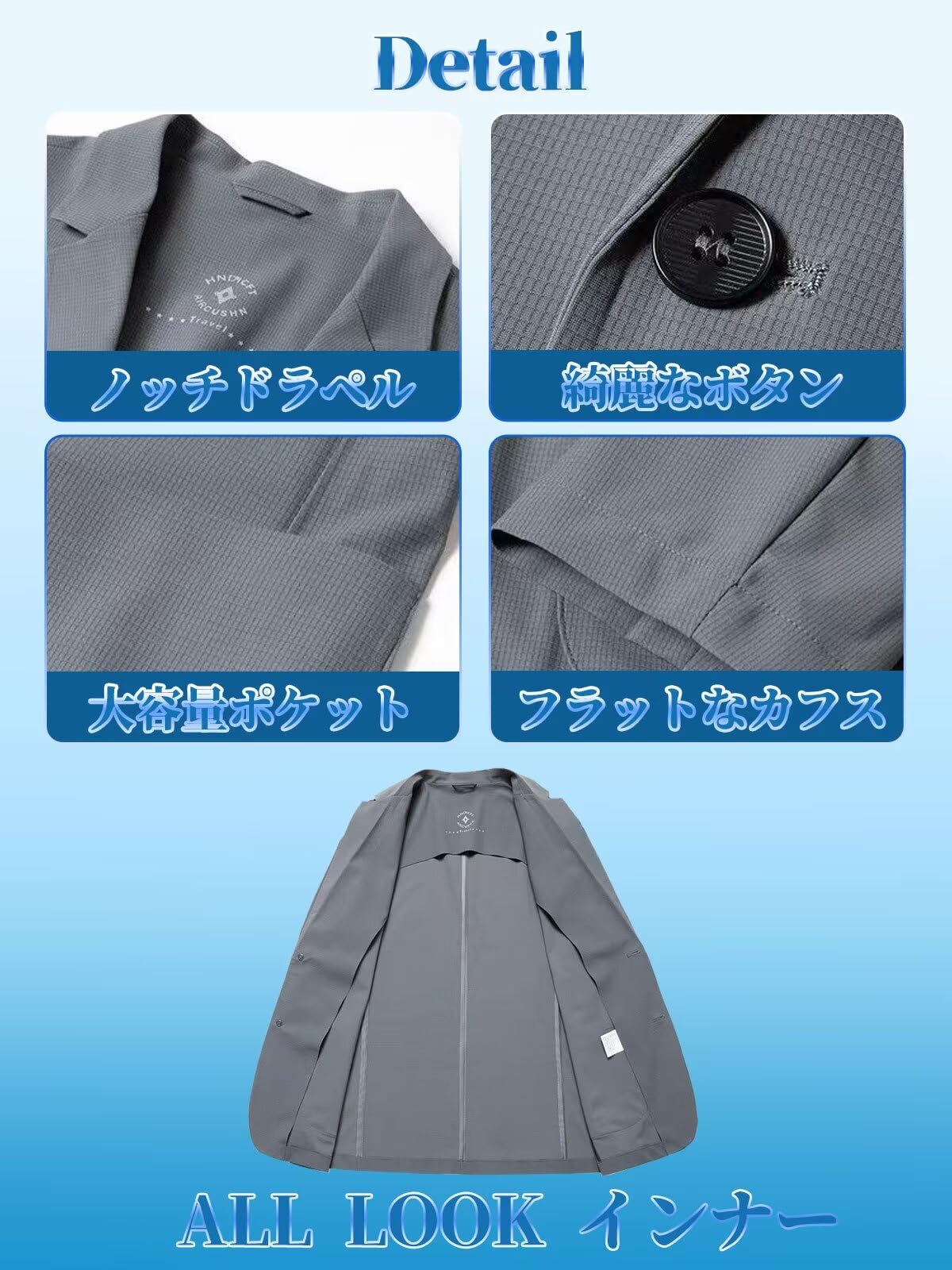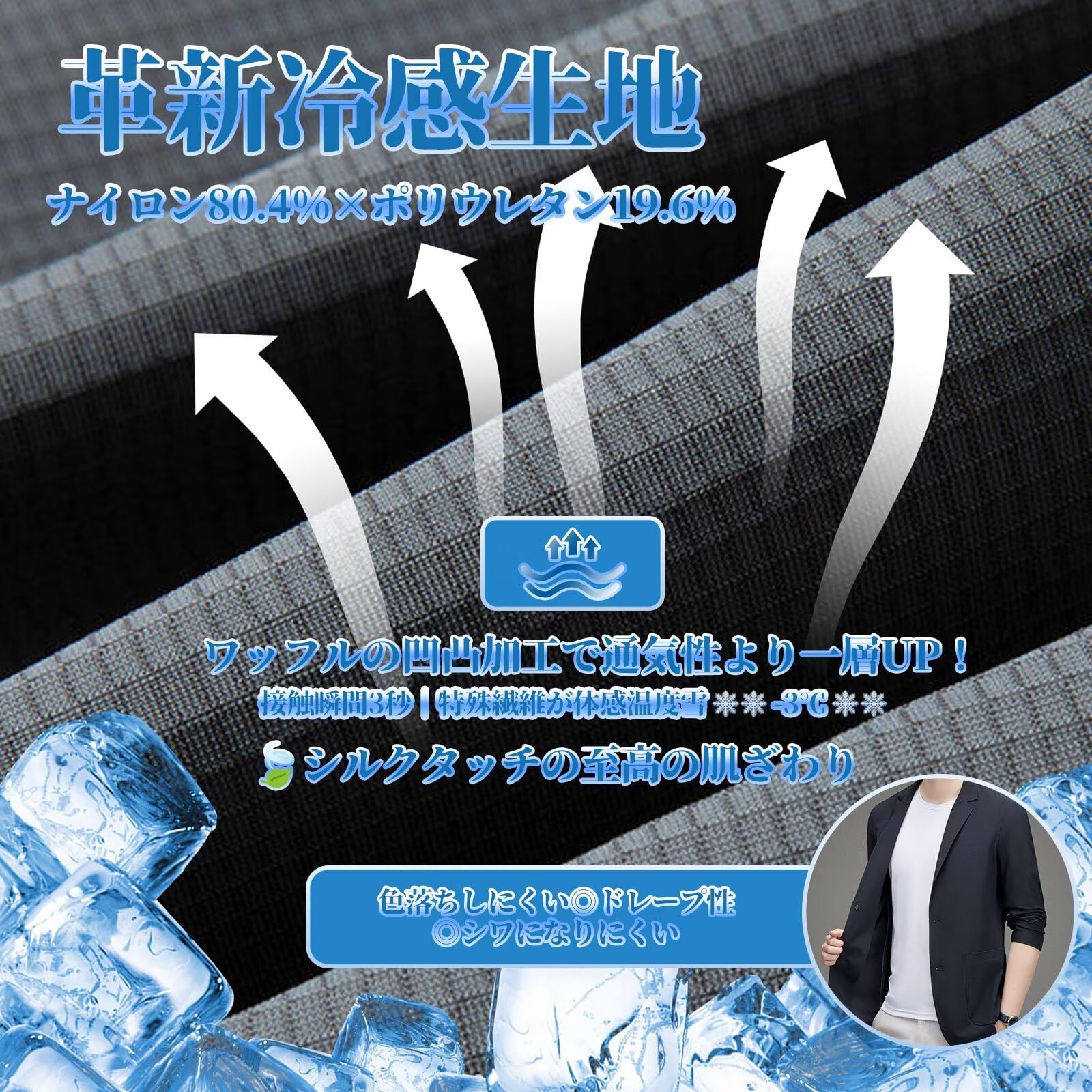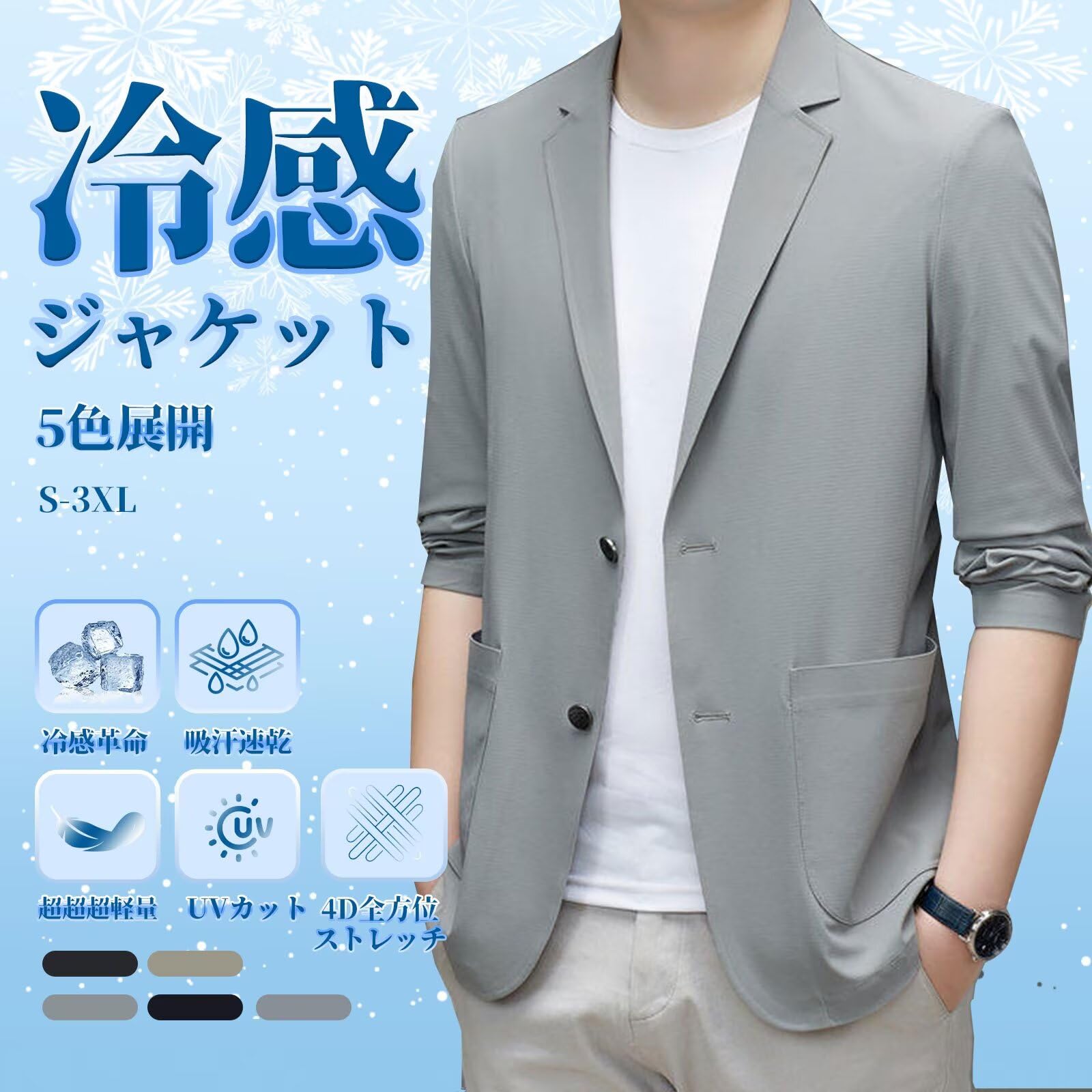 ?━━━━ 革新涼感技術 ━━━━? 【最新冷感素材採用】ナイロン80.4%×ポリウレタン19.6%の絶妙な配合により、ワッフルの凹凸加工で肌触りがなめらかで涼感テーラードジャケット。接触冷感効果により着用即ひんやり体感を実現。UVカット機能で炎天下の日焼け対策も万全。ブラック/グレーグリーン等5色展開で、S〜3XLの豊富サイズが幅広い体型に対応。
