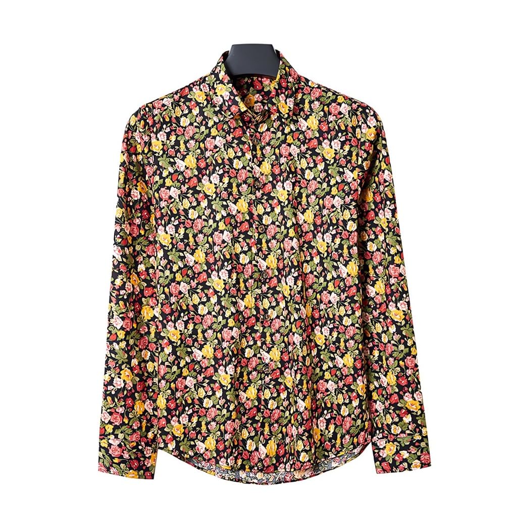 【おしゃれな花柄シャツ】華やかなプリントカラー、ゆったりとした身頃、長袖スタイルのアロハシャツです。春夏秋季節にも最適です!
