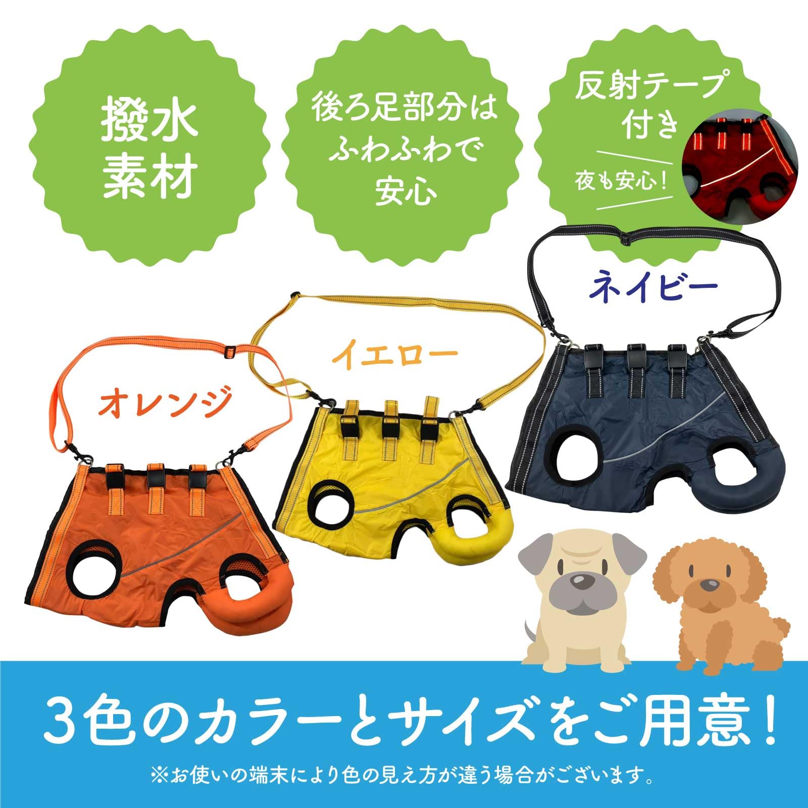 ?【素材】サポート時負荷のかかる後ろ足部分に、はソフトなふわふわ素材を使用。内側はメッシュにより耐久性と通気性のある素材を使用愛犬の服としても使用可能。軽量なのでワンちゃんへの負担も少なく、脱着・調節も簡単にできるように作られています。
