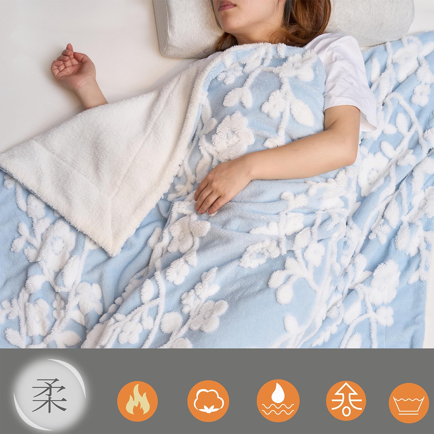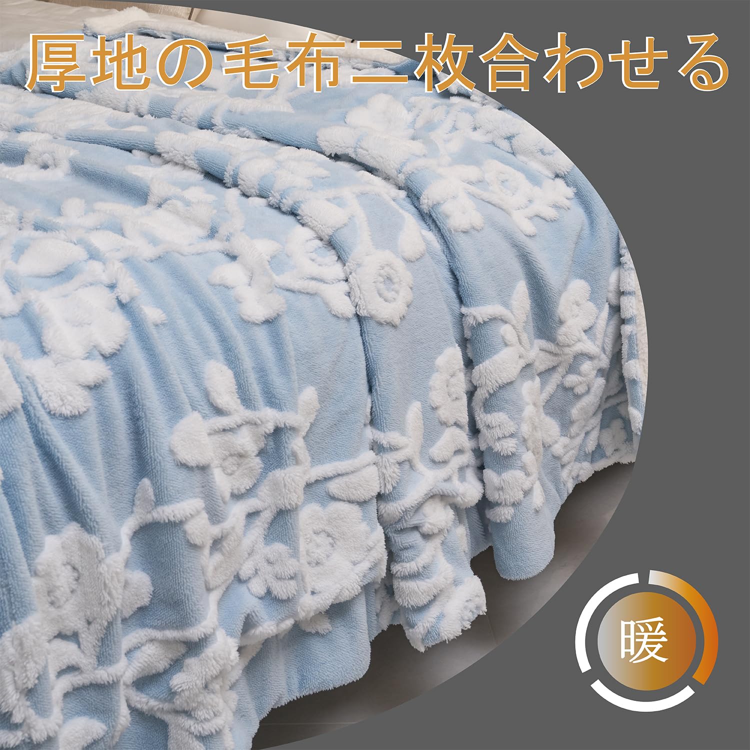 2枚合わせ 毛布 シングル 厚手 マイクロファイバーブランケット 暖かい 極温 あったか 静電気防止 洗える 抗菌防臭 四季適用 キャンプ 掛け毛布 (ブルー・145X200cm)