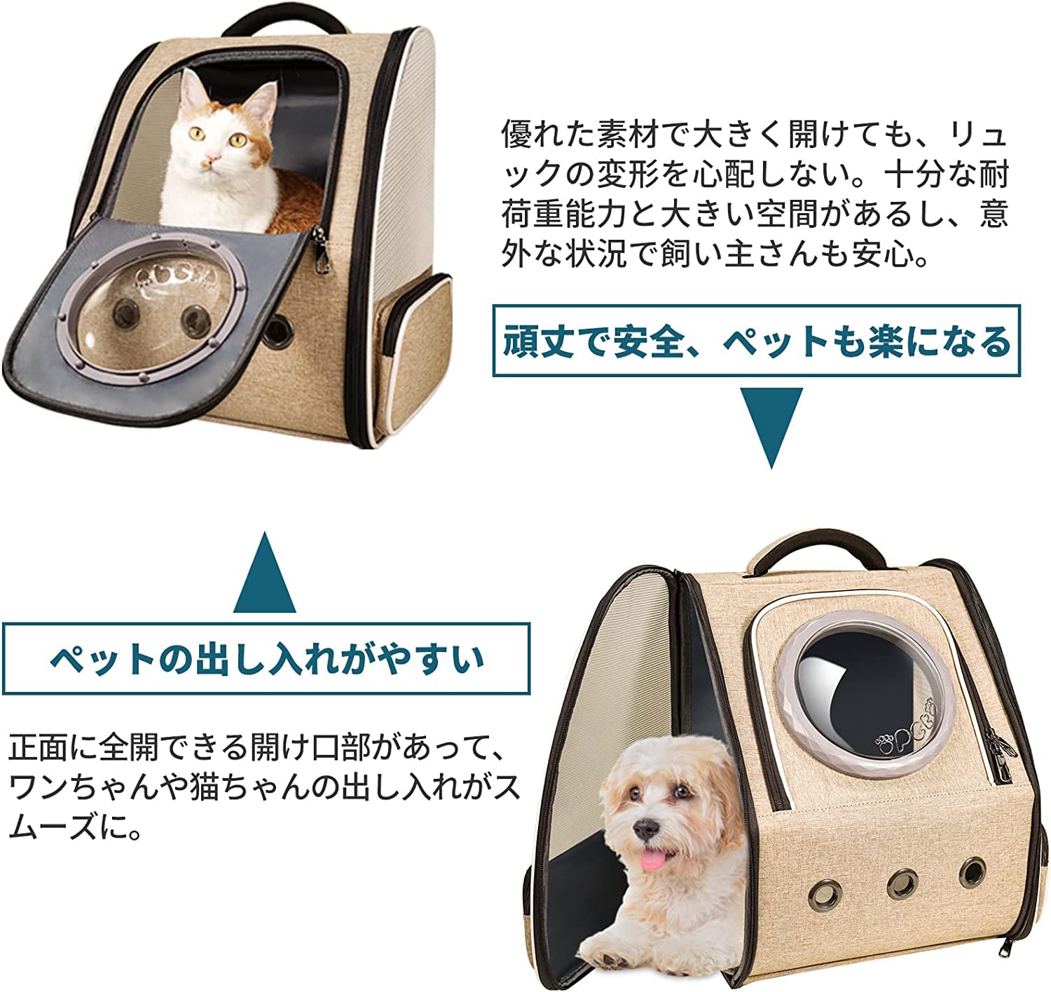【人気】Okiki 最新型 猫 犬 キャリー リュック ペットキャリー リュック バッグ 猫用 小型犬・小動物用 きゃりーバッグ 大容量 宇宙船 折り畳み 2種類の窓付き 通気性 旅行 通院 防災 避難用最適 | GIGATERA