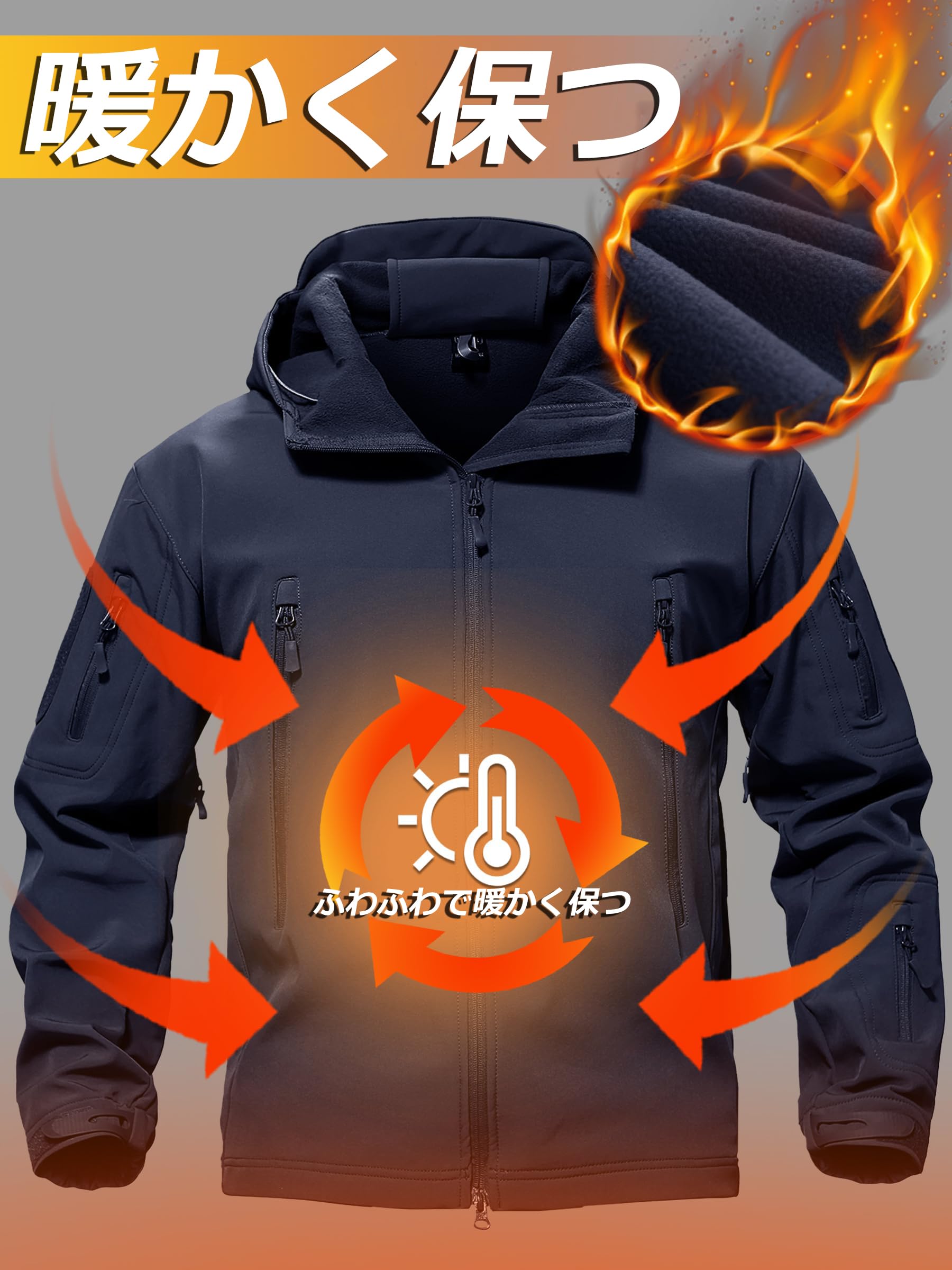 【人気】[TACVASEN] タクティカル ジャケット 撥水 防風 アウトドア アウター メンズ 防寒 裏起毛 ソフトシェル サバゲー ミリタリー 迷彩 ポケット フード付 ウインドブレーカー | GIGATERA