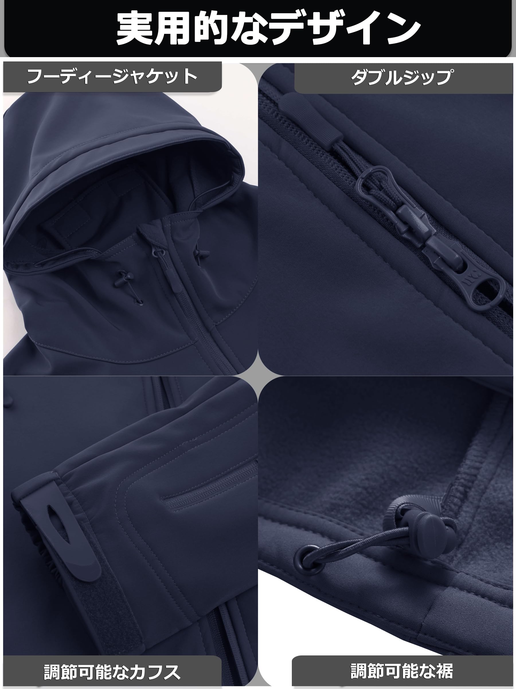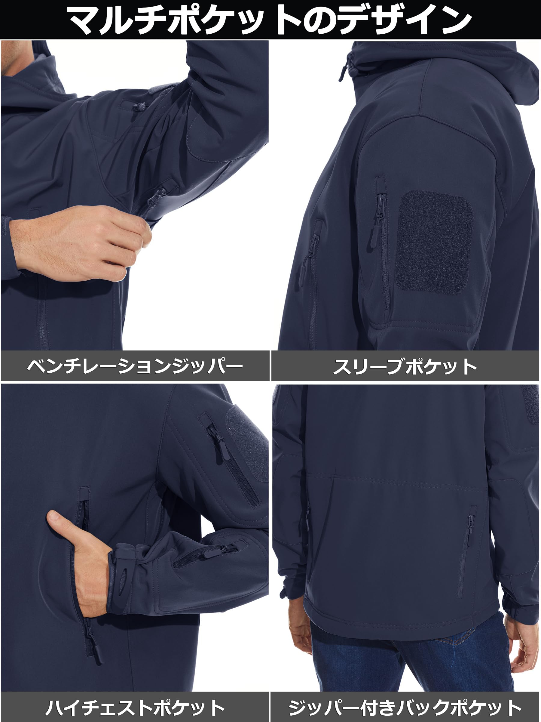 [TACVASEN] タクティカル ジャケット 撥水 防風 アウトドア アウター メンズ 防寒 裏起毛 ソフトシェル サバゲー ミリタリー 迷彩 ポケット フード付 ウインドブレーカー