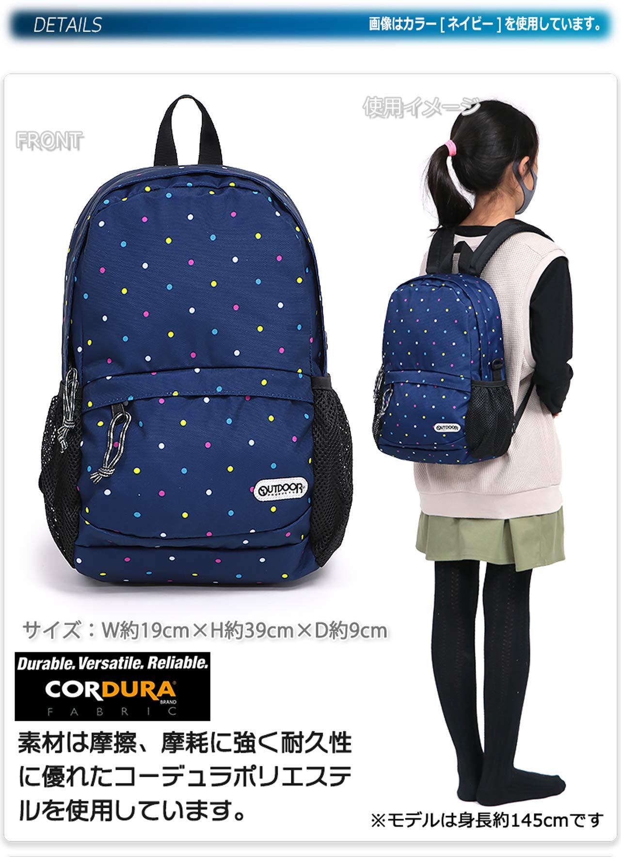 小ぶりなデイパックで子供から大人の女性にぴったりなサイズです。