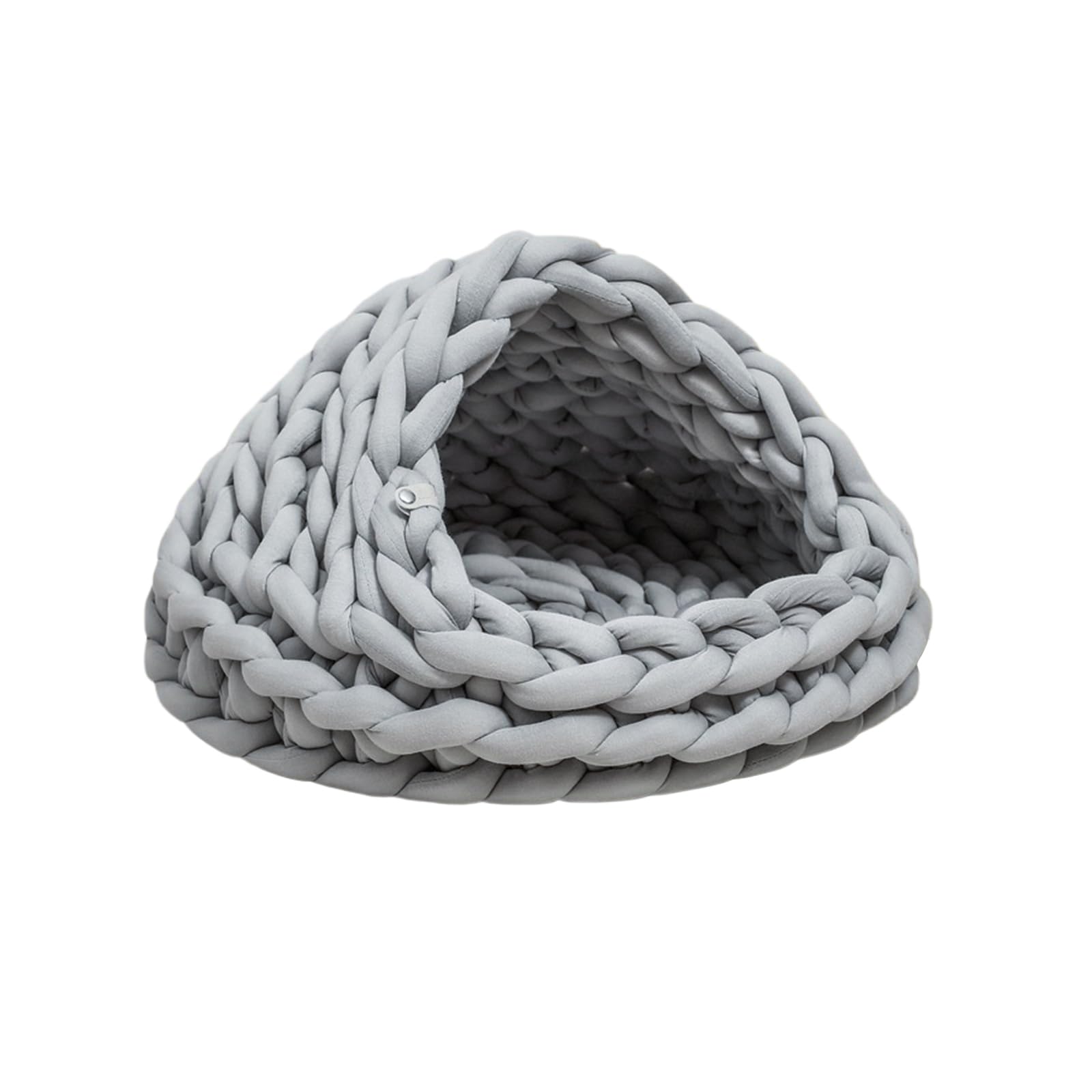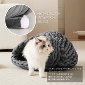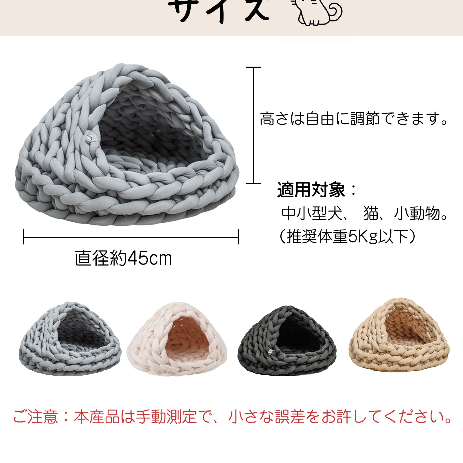 ペットベッド 猫ハウス おしゃれ 編み 犬ベッド ドーム型 ふわふわ クッション 編み糸 四季通用 洗える 猫犬兼用 太い芯糸 編み物ペット用品(グレー)