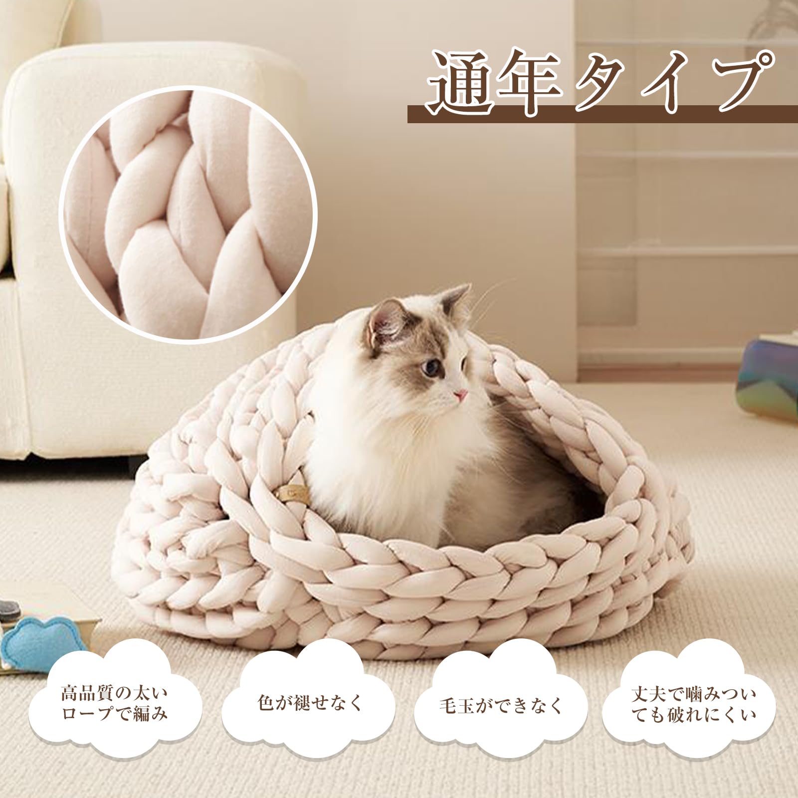 【耐久性&寝心地】高品質のチャンキーニット毛糸を使用し、色が褪せなく、毛玉ができなく、ふわふわの感触で、太いロープ編みので、丈夫で噛みついても破れにくいで、耐久性や寝心地に優れています!