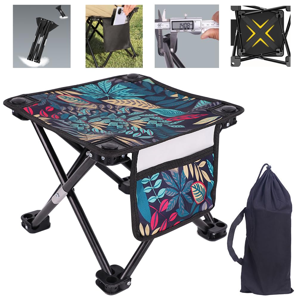 【在庫処分】折りたたみ椅子 アウトドアチェア サイドポケット付き 耐荷重200kg 折りたたみコンパクト椅子 おりたたみいす 軽量 【550gだけ】サイズ:33×33×32cm 持ち運び 折り畳み 椅子 1秒瞬間収納 収納バッグ付き アルミ合金 持ち運び 携帯便利 釣り バーベキュー 登山 野外 キャンプ お釣り 公園ランチ (葉しますL) | GIGATERA