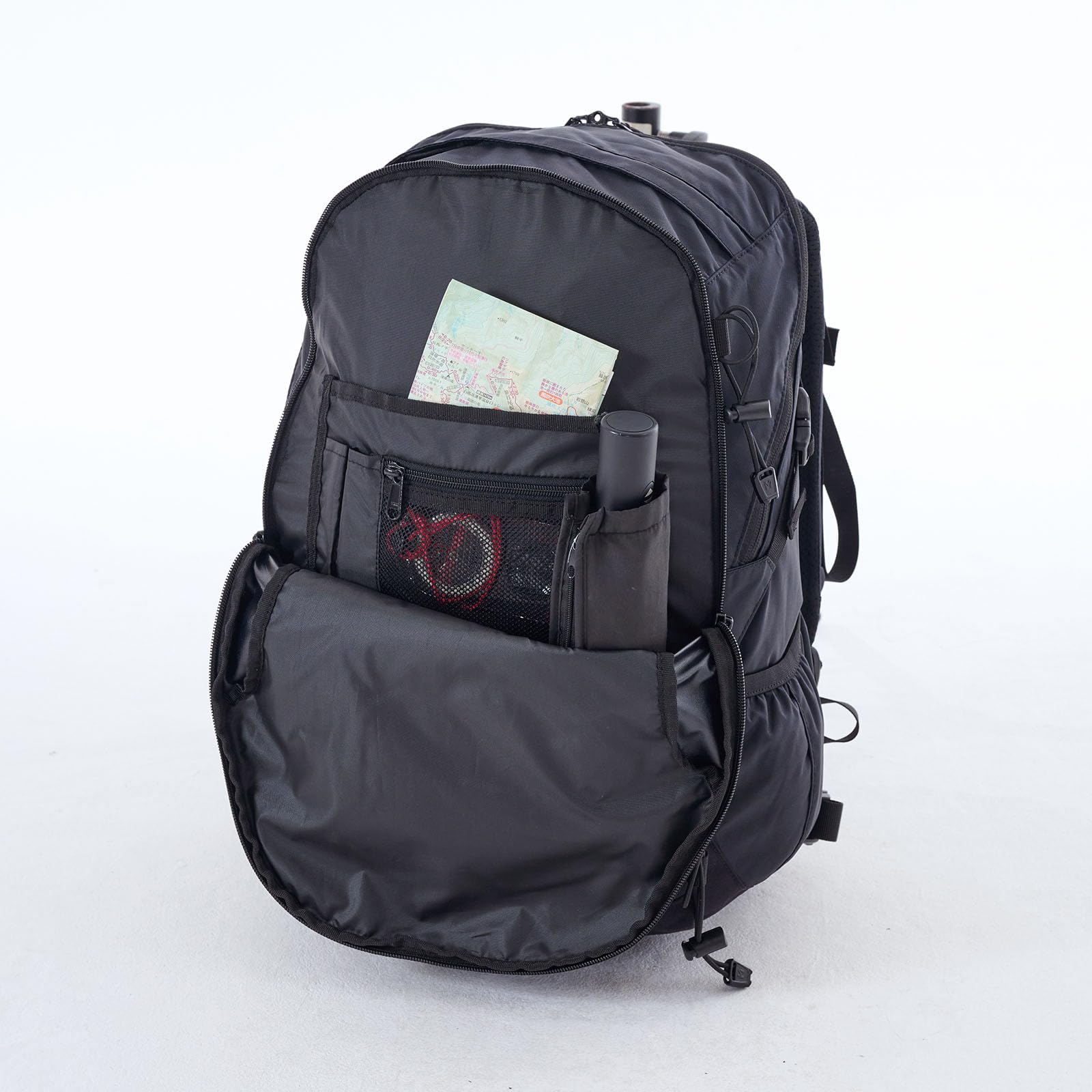 旅行や日常用パックとしての使いやすさと、アウトドアにも耐えうる快適性を両立した多用途リュックサック。すっきりとしたクリーンな外観、錠をつけることができるジッパー、取り外し可能なウエストストラップなど、旅行先での街歩きでも違和感のないデザインや便利な機能が備わっています。さらに耐久性十分な生地、安定性と快適性を備えた背面パネルとショルダーハーネス、サイドポケットやポールホルダーといったアウトドアでも十分利用可能。未知の世界を旅する人に必要な特徴が揃っています。