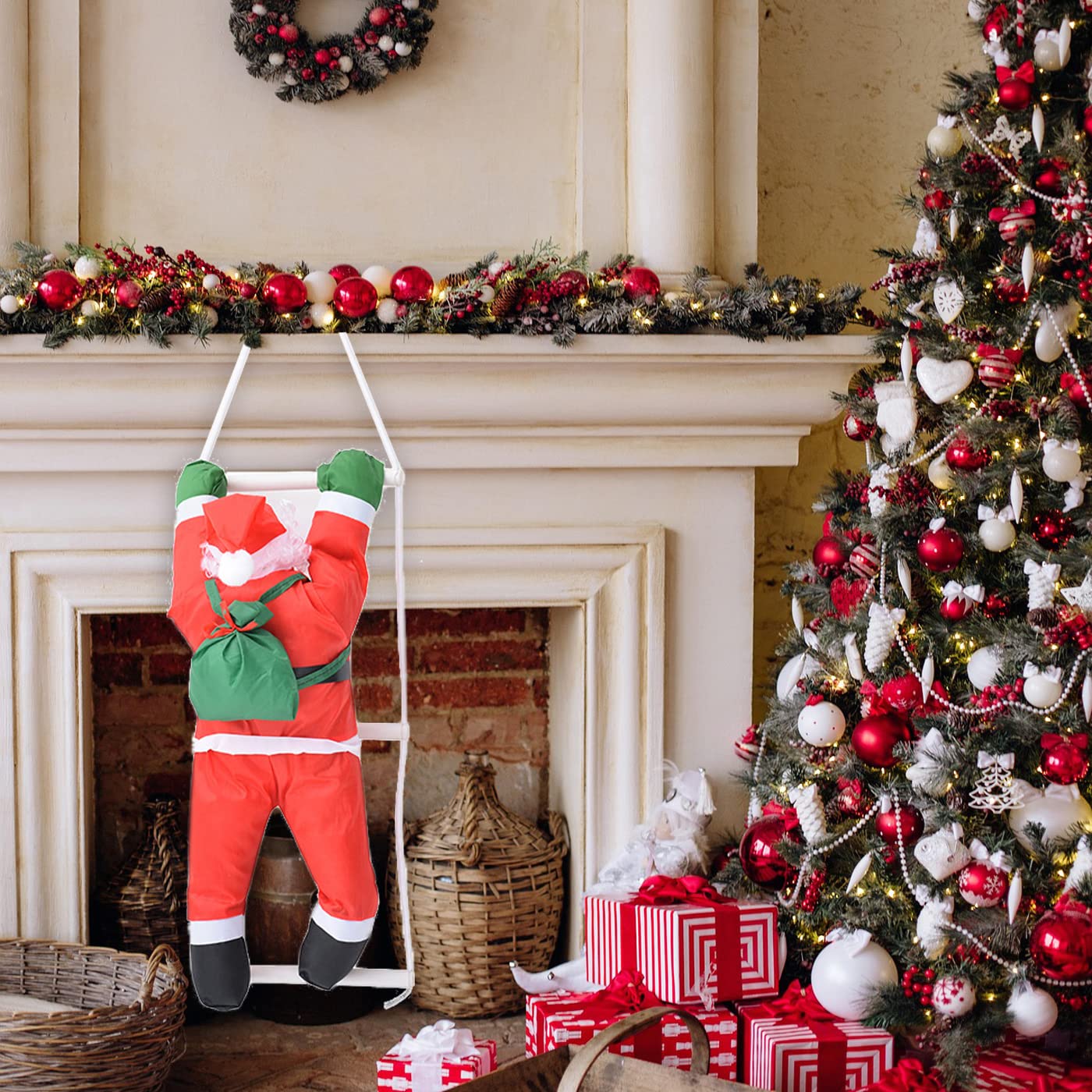 ★クリスマス飾り:サンタ人形はしごはクリスマスに不可欠なクリスマスのツリーに吊るす装飾グッズ、それにホームインテリアに素晴らしいな用品です。クリスマスときにドア、壁などに掛けて、インテリアとして楽しんだりしています。クリスマスを盛り上げるアイテムとして欠かせないクリスマスツリーオーナメントです。</br>