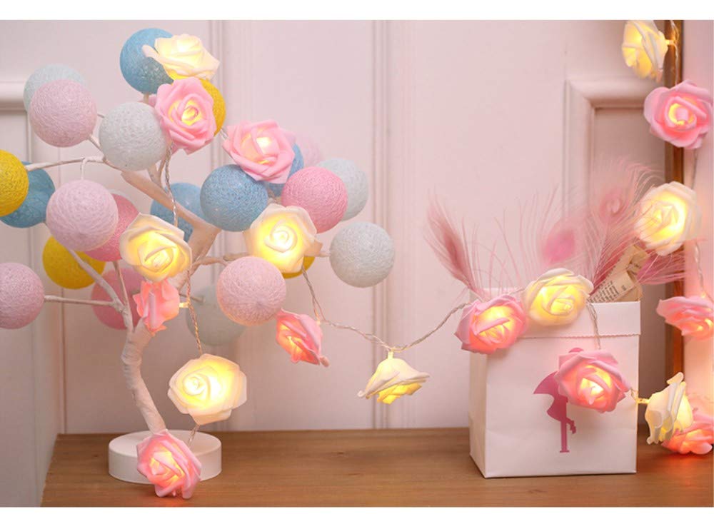 [Yuuming] バラ ライト イルミネーションLEDライト 電池式 10電球/20電球/50電球 LEDフラワーストリングライト 結婚式 ホーム パーティー 誕生日 バレンタインデー フェスティバル 念日 正月 プレゼント 室内装飾 (50LED 5M, ピンク + 白)