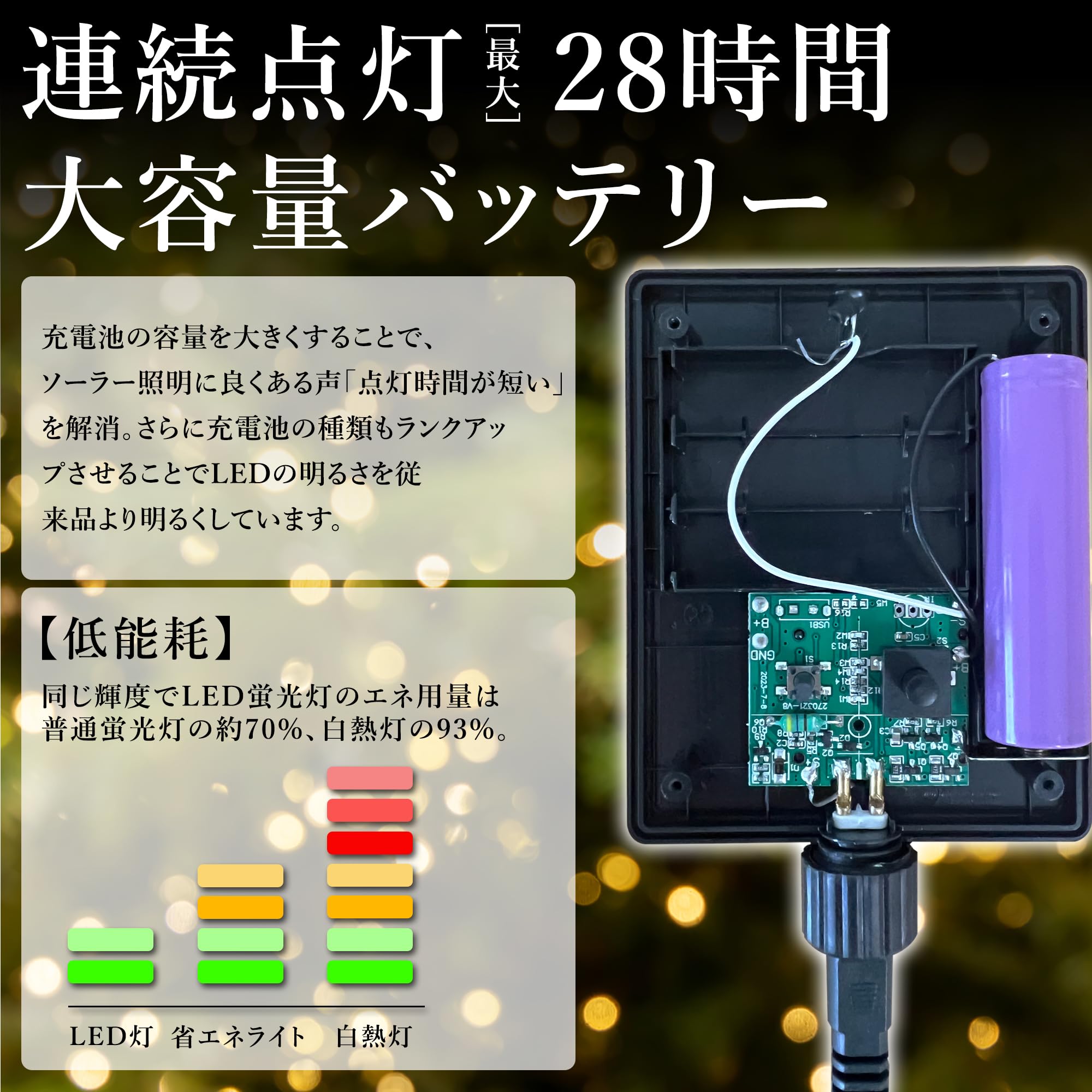 ?? 【長時間使用可能&エコ設計】 太陽光での充電式なので、電気代ゼロ!フル充電には約8時間、最大20時間の連続使用が可能です。ソーラー充電式イルミネーションライトとして、自動点灯機能付きで、周りが暗くなると自動的に点灯し、明るくなると消灯。節約しながら、外観をおしゃれに演出できます。設置も簡単で、専門知識がなくてもすぐに楽しめるエコな照明です。