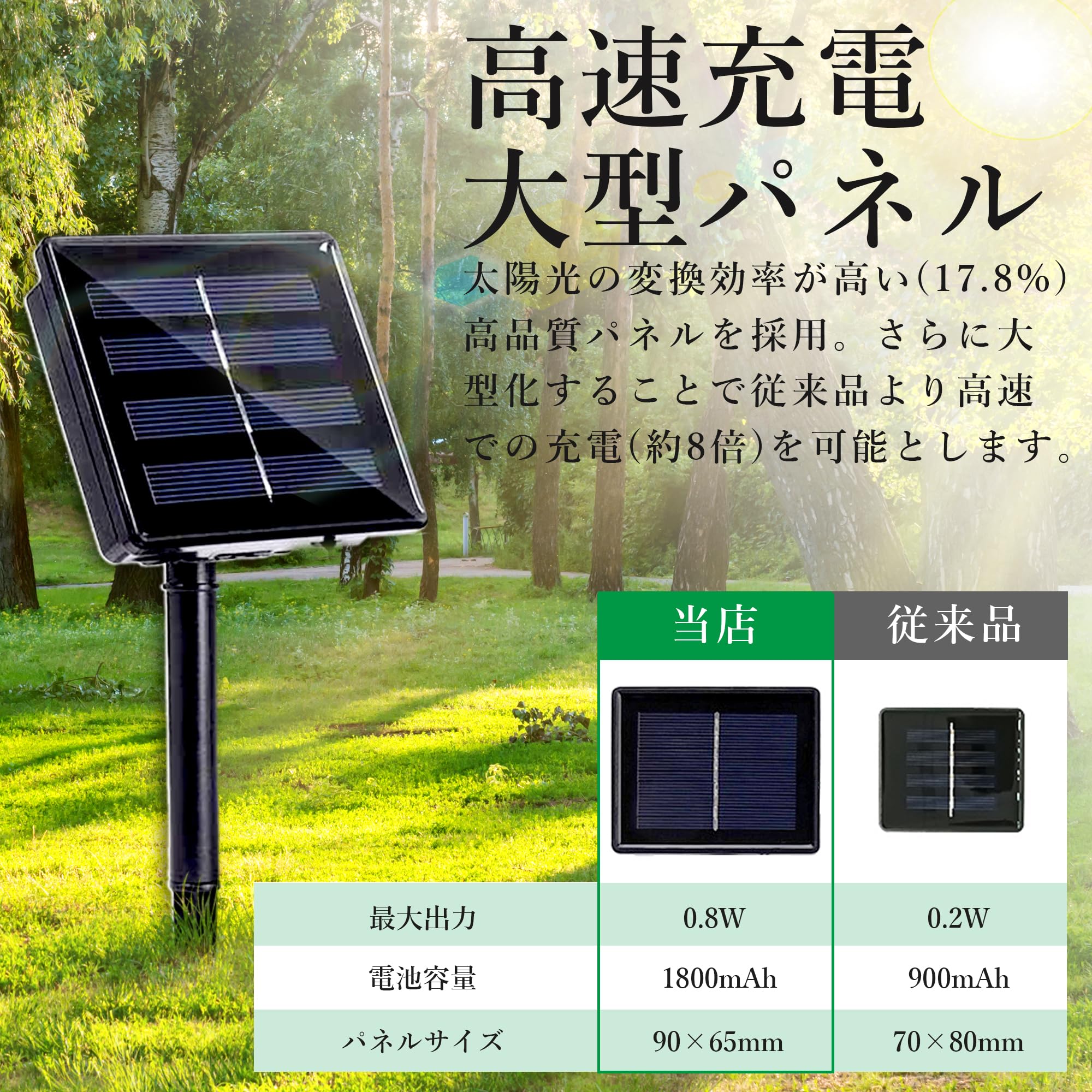 ?? 【安心の品質】 万が一商品に不具合があった場合は、注文履歴より出品者までお気軽にお問い合わせください。代替品または対応いたします。PSE認証を取得した製品なので、安心してご使用いただけます。ソーラーパネルを直射日光に当てるだけで簡単充電、夜間は自動点灯する便利な設計です。