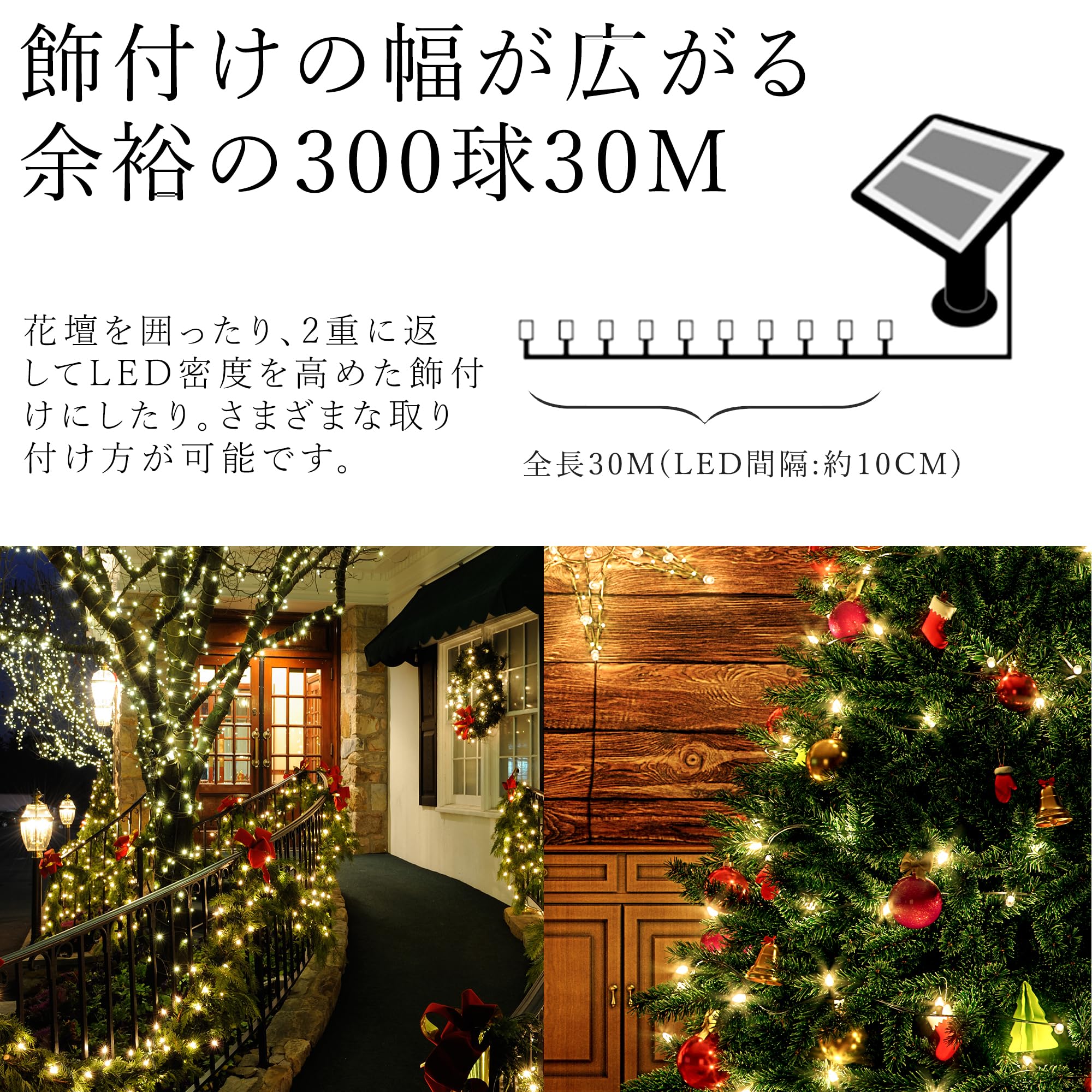 KIMOC ソーラー イルミネーションライト ガーデンライト LED 30m 300球 屋外 庭 ライト ストレート IP65 防水 8モード 夜間自動 点灯 クリスマス ハロウィン パーティー バレンタインデー 新年 祝日 結婚式 誕生日 学園祭屋外 室外 室内 庭対応 ソーラーパネル 大容量 飾りライト ソーラー (ブルーホワイト)