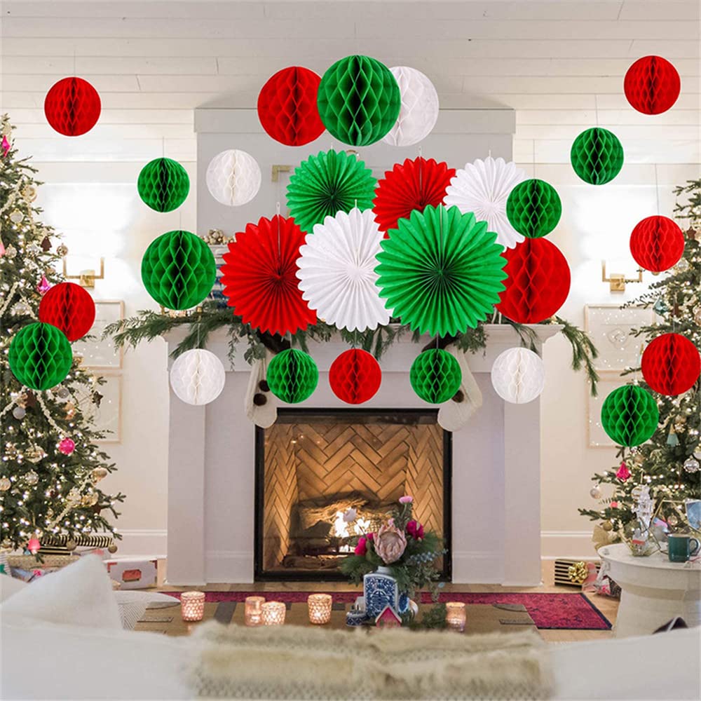 DUOLEIMI クリスマス ハニカムボール ペーパーファン 飾り付けセット 30点セット ペーパーポンポン クリスマス飾り 扇子 クリスマスパーティー デコレーション インテリア 装飾