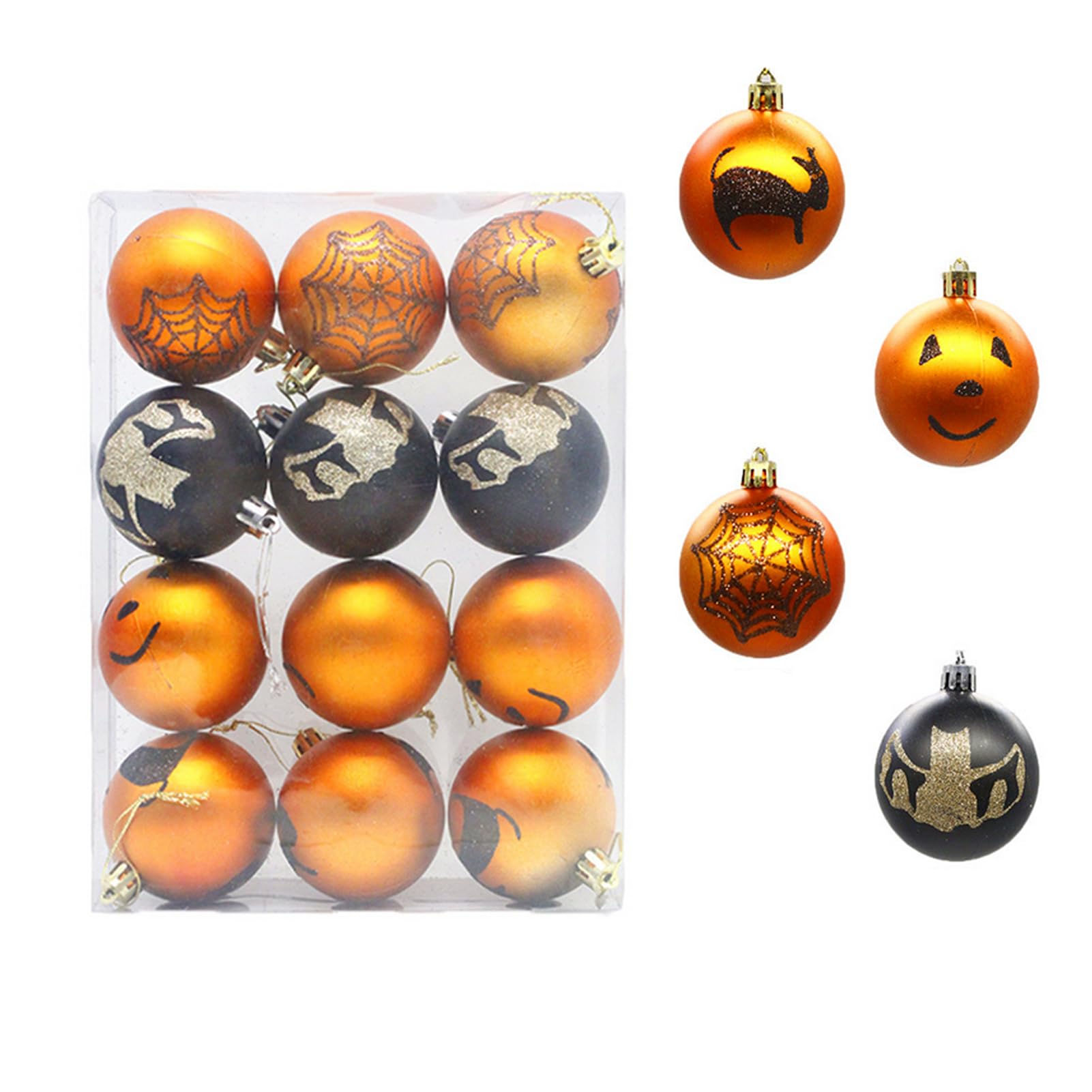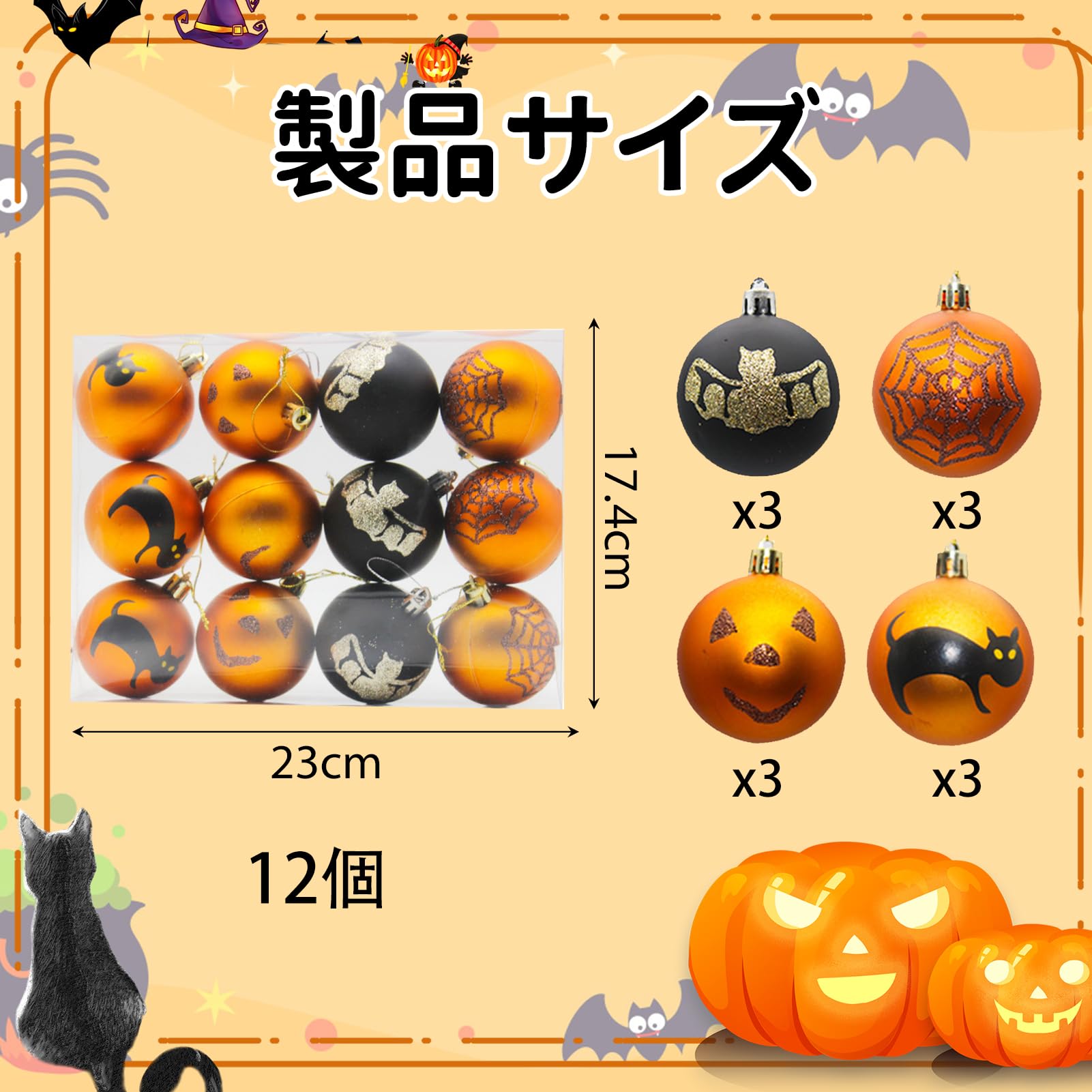 【セット内容】1セット合計12個。4種類のデザインがそれぞれ3つあります。材質:プラスチック、各直径は約6 cm。カラフルな小さな飾りを飾りたい場所につけると、ハロウィンの雰囲気が濃くなります。