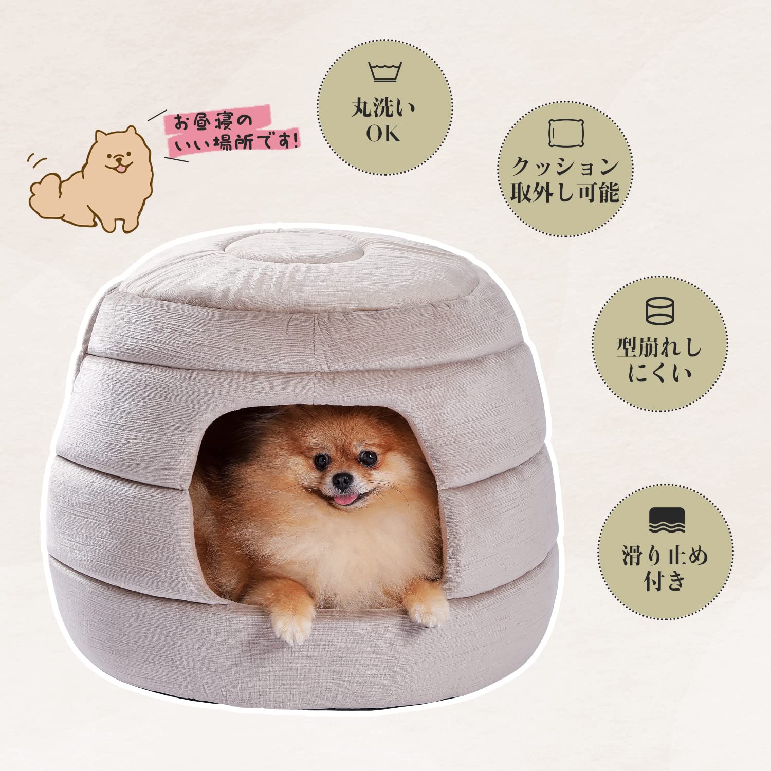 PAWZ Road 犬 ベッド ドーム 犬 ハウス 犬小屋 犬のハウス 猫ハウス 猫ベッド 室内 ペットベッド ハチの巣形 お洒落 かわいい 両用 折りたたみ 2way クッション 取り外し可能 いぬ ねこ ベージュ