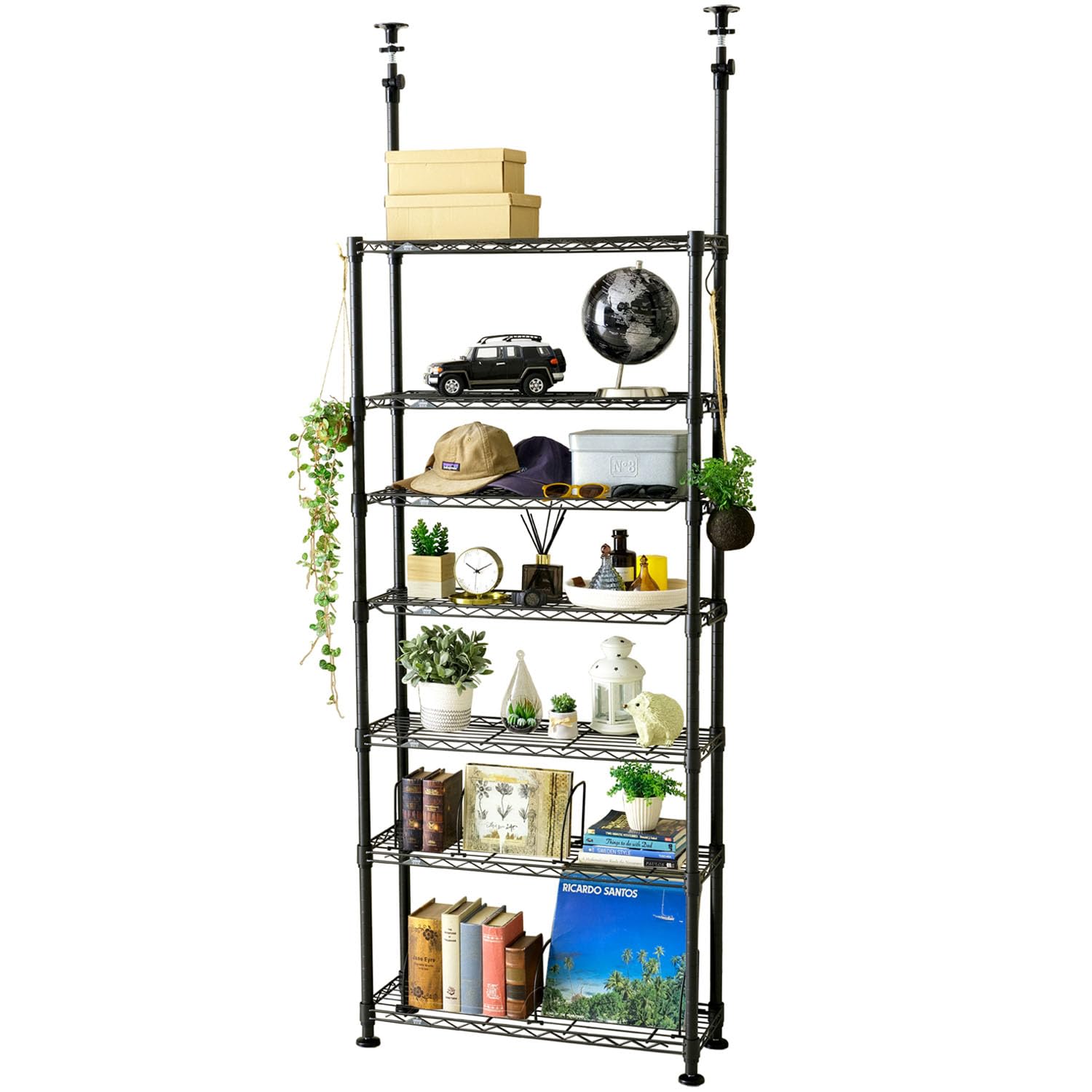 【在庫処分】ドウシシャ ルミナス ノワール 突っ張り ラック つっぱり 本棚 7段 幅80 奥行30 スリム 壁面収納 ウォールラック 簡単取付 段差対応 転倒防止 大容量 黒 ブラック キッチン 耐荷重80kg 幅78×奥行27.5×高さ220~280cm NO76-7T | GIGATERA