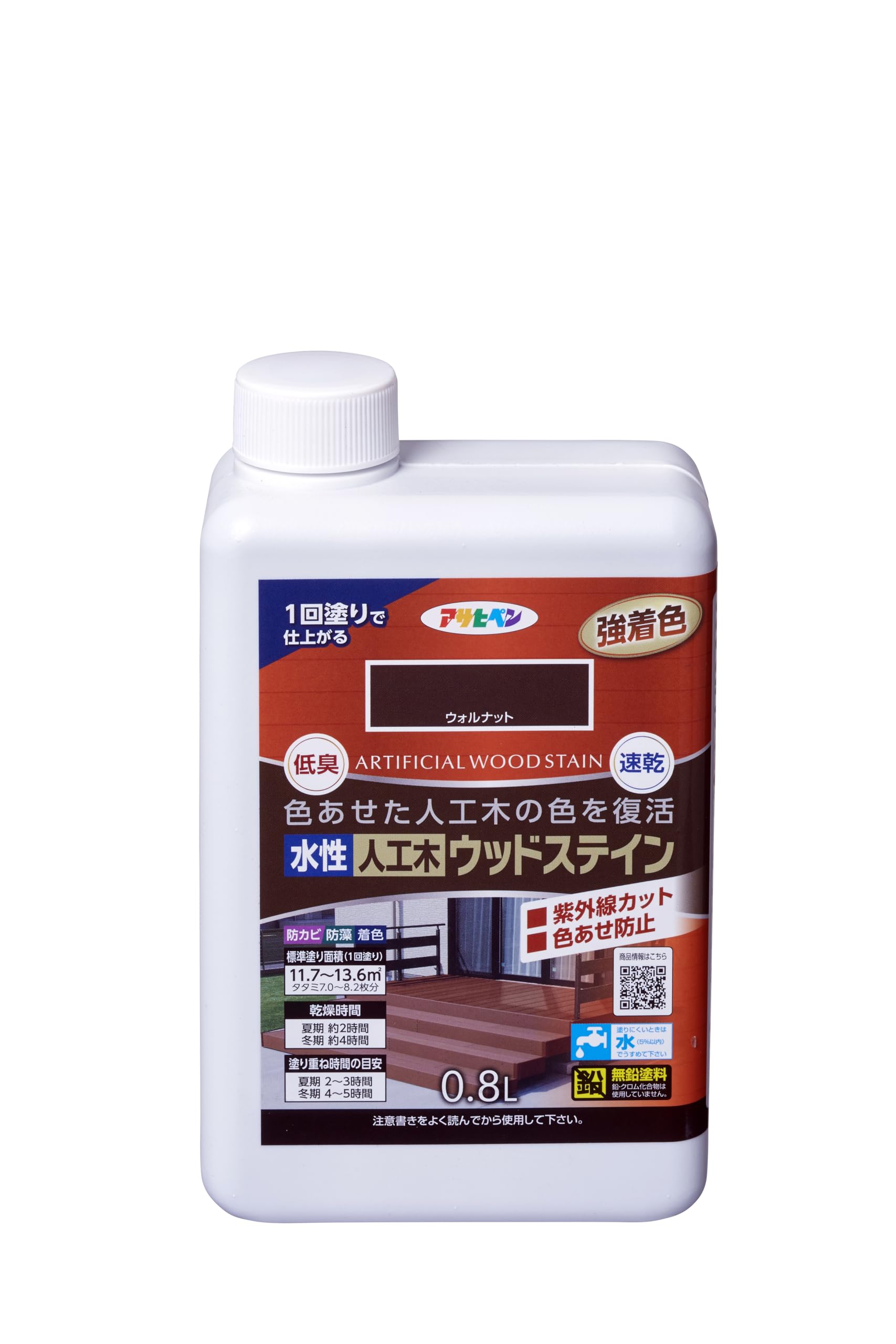 アサヒペン 塗料 ペンキ 水性人工木ウッドステイン 0.8L ウォルナット 水性 強着色 1回塗り 艶消し ステイン仕上げ 低臭 防カビ 防藻 紫外線吸収剤配合 日本製