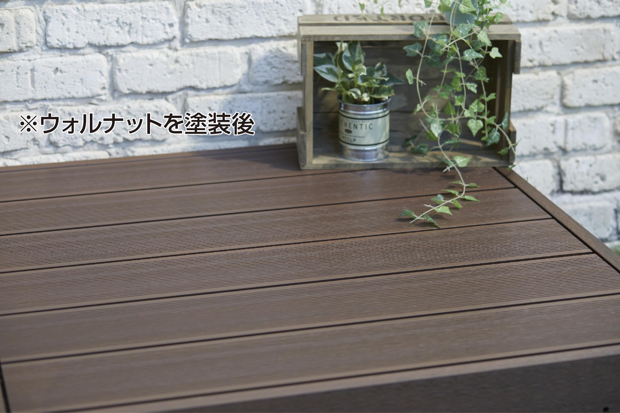 着色タイプは1回塗りで、色あせてしまった人工木の色を復活させるのに適しています。