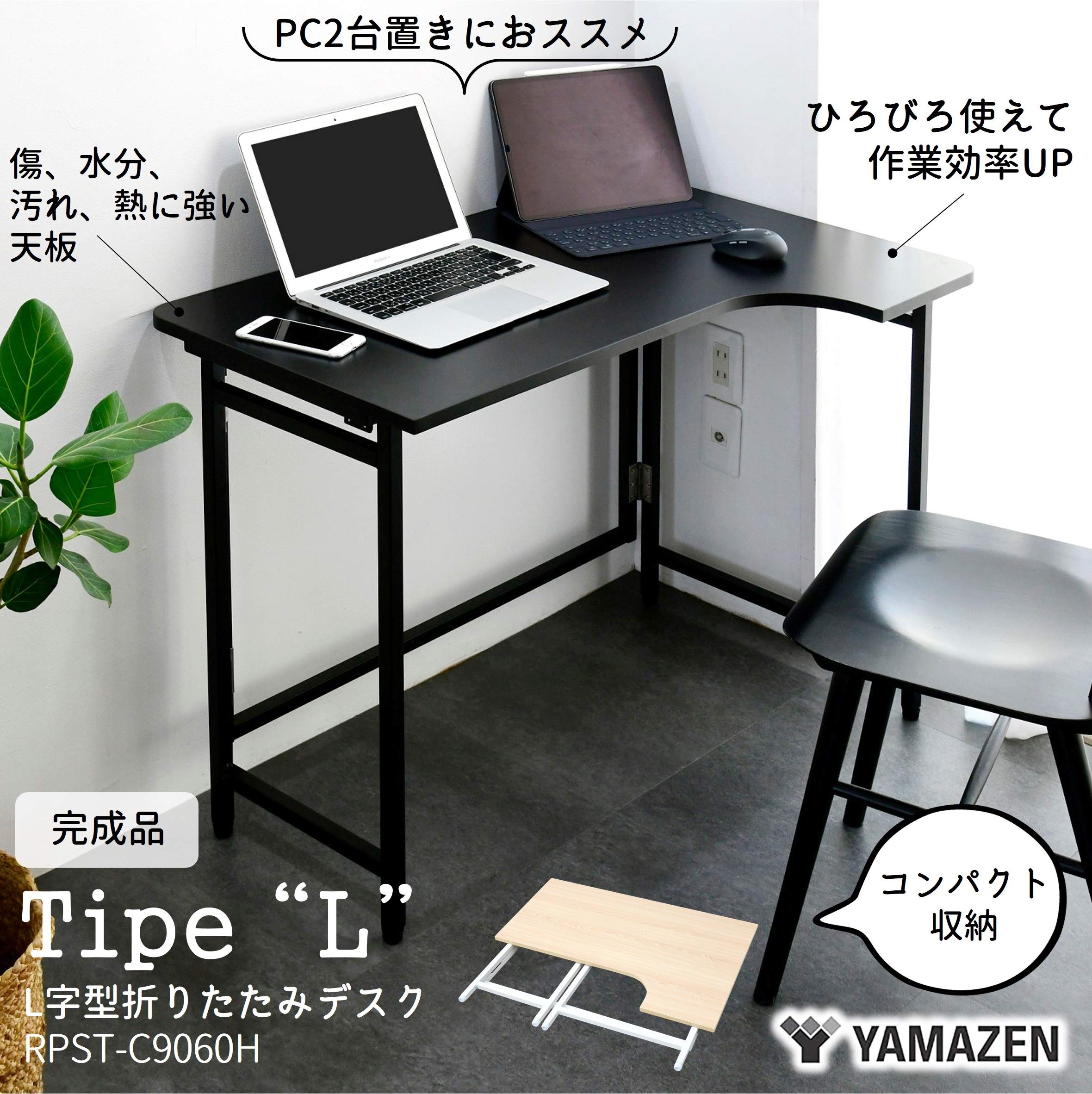 山善(YAMAZEN) デスク (L字デスク) 折りたたみ 傷・汚れ・水分・熱に強い天板 なめらかな表面 角が丸い アジャスター付き 幅90×奥行60×高さ70.5cm 完成品 ブラック/ブラック RPSTC9060HBKBK4 テレワーク