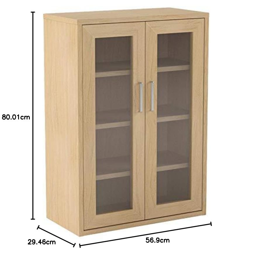 【特価在庫】白井産業 キャビネット カップボード キッチン収納 ガラスキャビネット 同シリーズで組み合わせ自由自在 一人暮らしの部屋や狭いスペースにぴったりサイズ ナチュラルブラウン木目柄 ベーシックデザイン 幅56.6×奥行29.5×高さ80cm FUL-8055GNA フルニコ | GIGATERA
