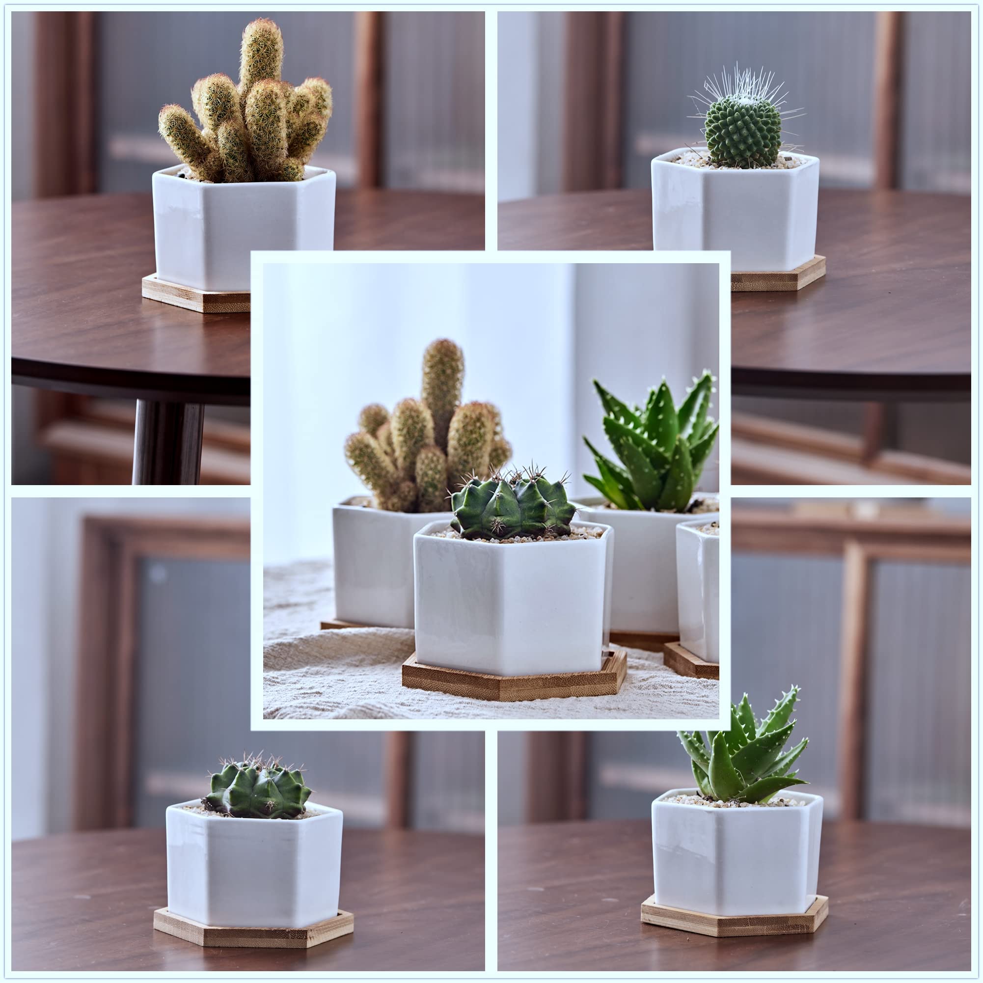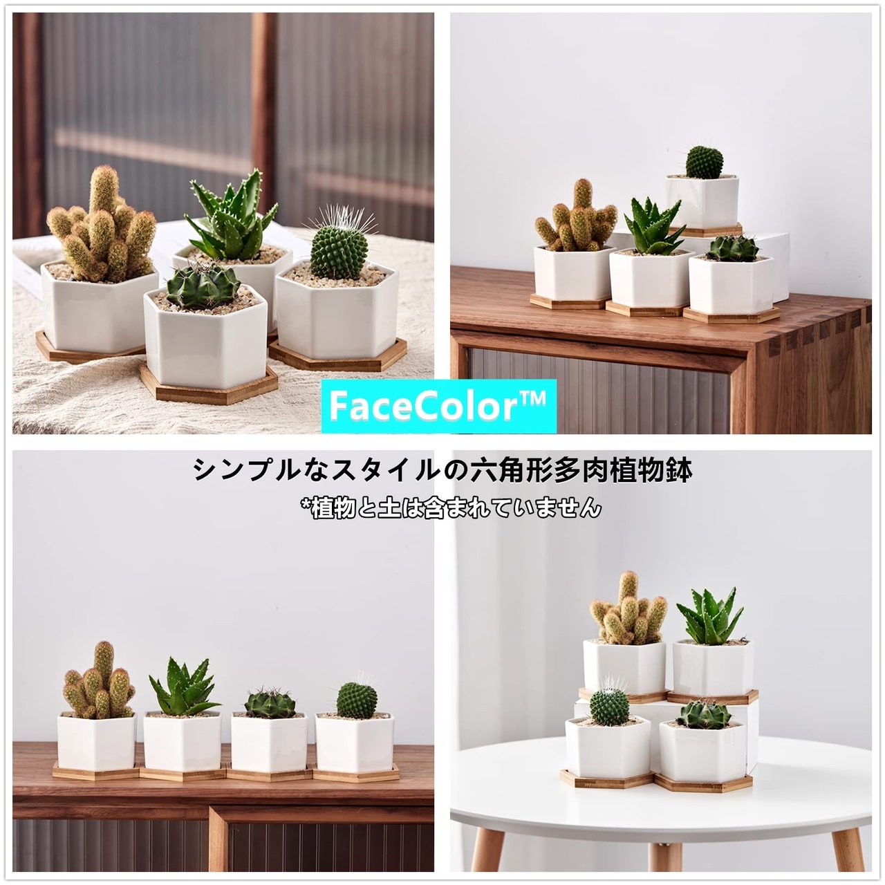 【在庫処分】多肉植物鉢 陶器鉢 プランター サボテン鉢 六角形 (サイズ 9*10*6 CM) 底穴あり トレイ付き ヘキサゴン ホワイトセラミック 観葉植物 ガーデニング リビング 玄関 バルコニー 庭インテイア適用 4点セット (植物を含まない) | GIGATERA