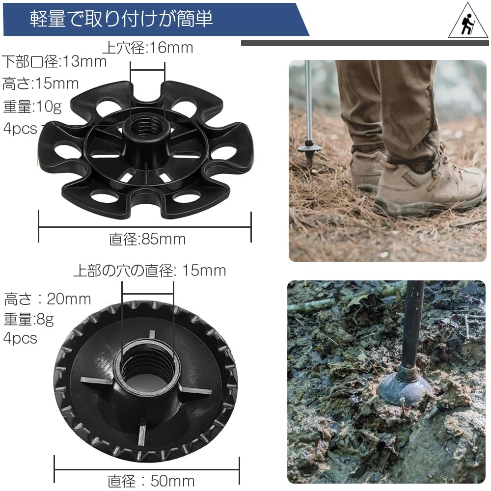 【新着】トレッキングポール ハイキング用 スノーバスケット 泥ストッパー 交換用 8個セット ウォーキングポール バスケット 接触面積の増大 軽量 防水 登山用 杖 スキーポール 取り替え用 取り付け簡単 ハイキング/登山 贈り物に最適 ブラック(泥ストッパー4個/スノースケット4個合計8個セット) | GIGATERA