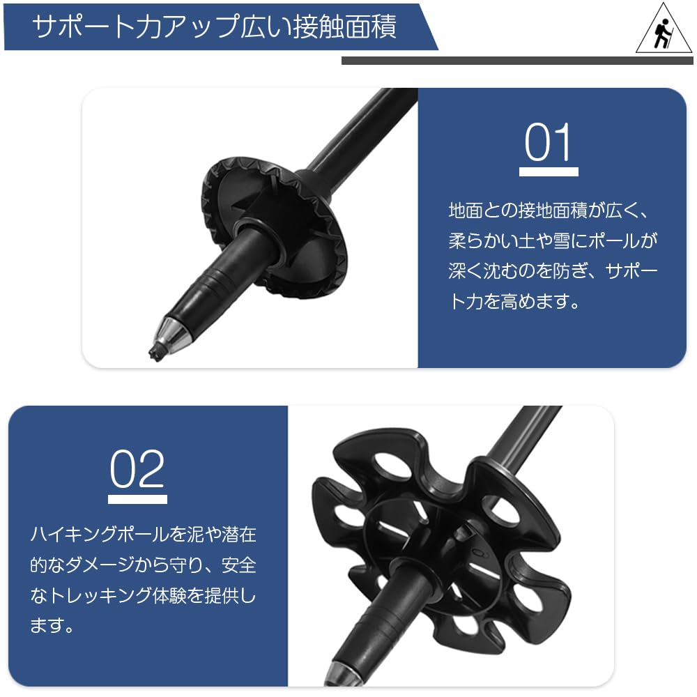 多用途: 大きな接触面積のデザインで、登山棒が柔らかい地面や雪に沈むのを防ぎます。不要な土の侵入から解放されます。ハイキング、登山、アドベンチャーなど、さまざまなアウトドア活動に適しています。トレッキングポールのアクセサリーとして、また熱心な登山家への贈り物としても最適です。