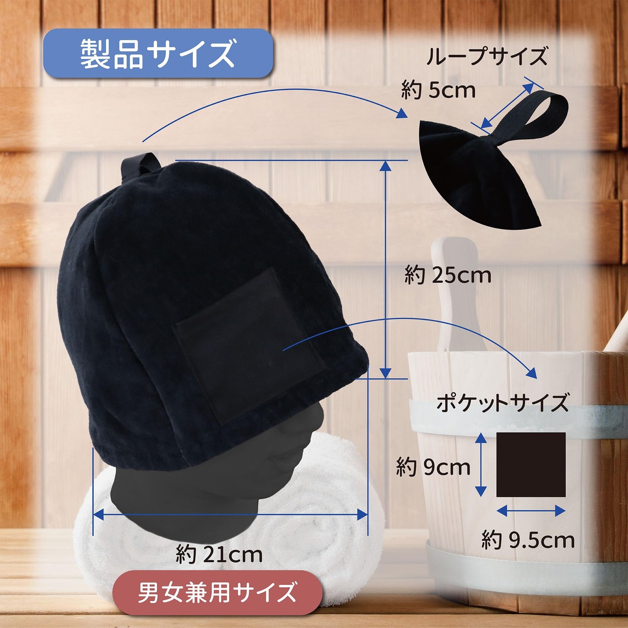 今治タオルで作られたサウナハット。 肌にやさしいコットンを使用しており、柔らかな肌触りが特徴です。 今治ブランドマークは今治タオル工業組合が定める品質基準をクリアした製品であることの証です。 サウナハットを被ることで高温から髪を保護し、髪の水分蒸発を防ぐことで保湿効果が期待できます。 頭皮や耳への熱ダメージを軽減しのぼせ防止にも役立ち、サウナをより快適に楽しめます。 やさしい肌触りと優れた吸水性を兼ね備えた今治タオルは、お子様にも安心してお使いいただけます。 シンプルなデザインは、男女問わず人気。 小物ポケットにはロッカーキーやヘアゴム、ヘアクリップなどを収納でき、使用後や乾燥時にはループで引っ掛けることも可能なため、機能性も抜群です。 抗菌防臭加工により、繊維上の佐伯の増殖を抑制し、防臭効果がございます。 ぜひ、日本製の安心ブランド、今治サウナハットをお楽しみください。