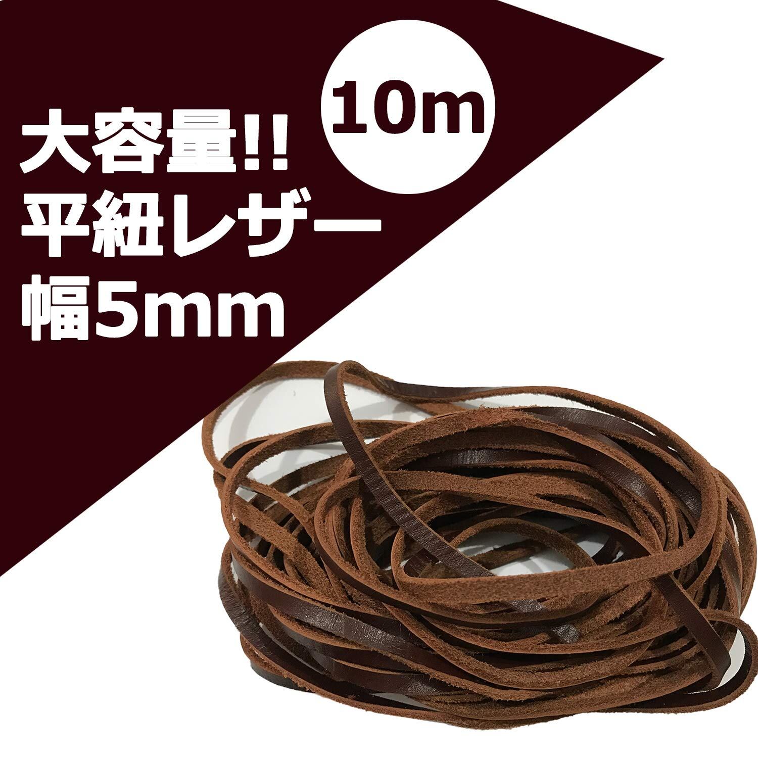 (エスネット) 牛革 レザー コード 本革 紐 ひも 平紐 チョーカー ネックレス チャーム ビーズ アクセサリー 厚さ 2mm diy (幅5mm 10m)