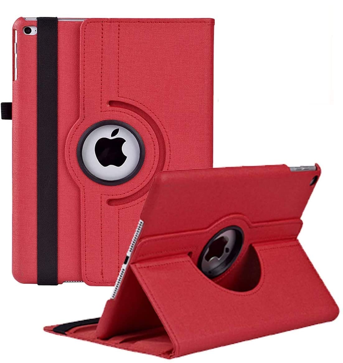 【在庫処分】iPad 9.7 2018/2017ケース 新型(Newモデル)/iPad Air/iPad Air2カバー iPad 9.7インチ(第6、5世代)軽量 手帳型 360度回転スタンド オートスリープ機能 3段階調節可能 固定バンド 脱落防止耐衝撃 耐久性 おしゃれデニム 生地(赤い) | GIGATERA