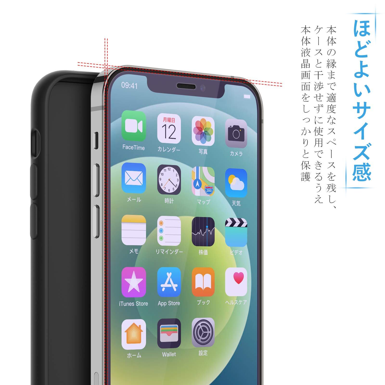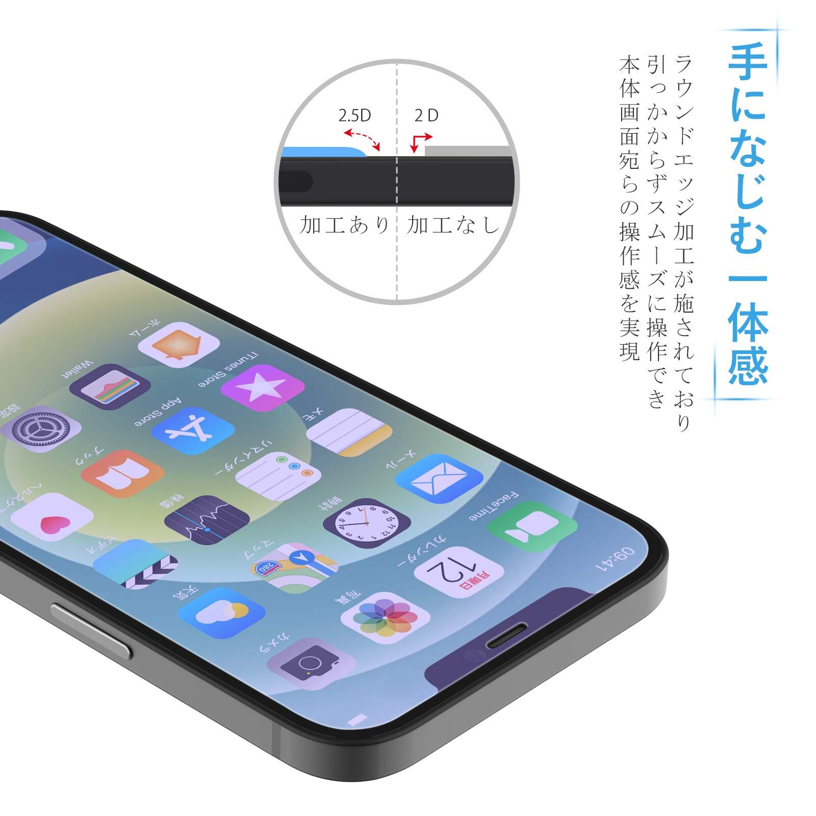 ?専用デザイン ?iPhone本体の縁にスペースを残すデザインとなっており、フィルムの剥がれや浮き上がりを防止し、いろんなタイプのケースと干渉せずに快適に使えます。
