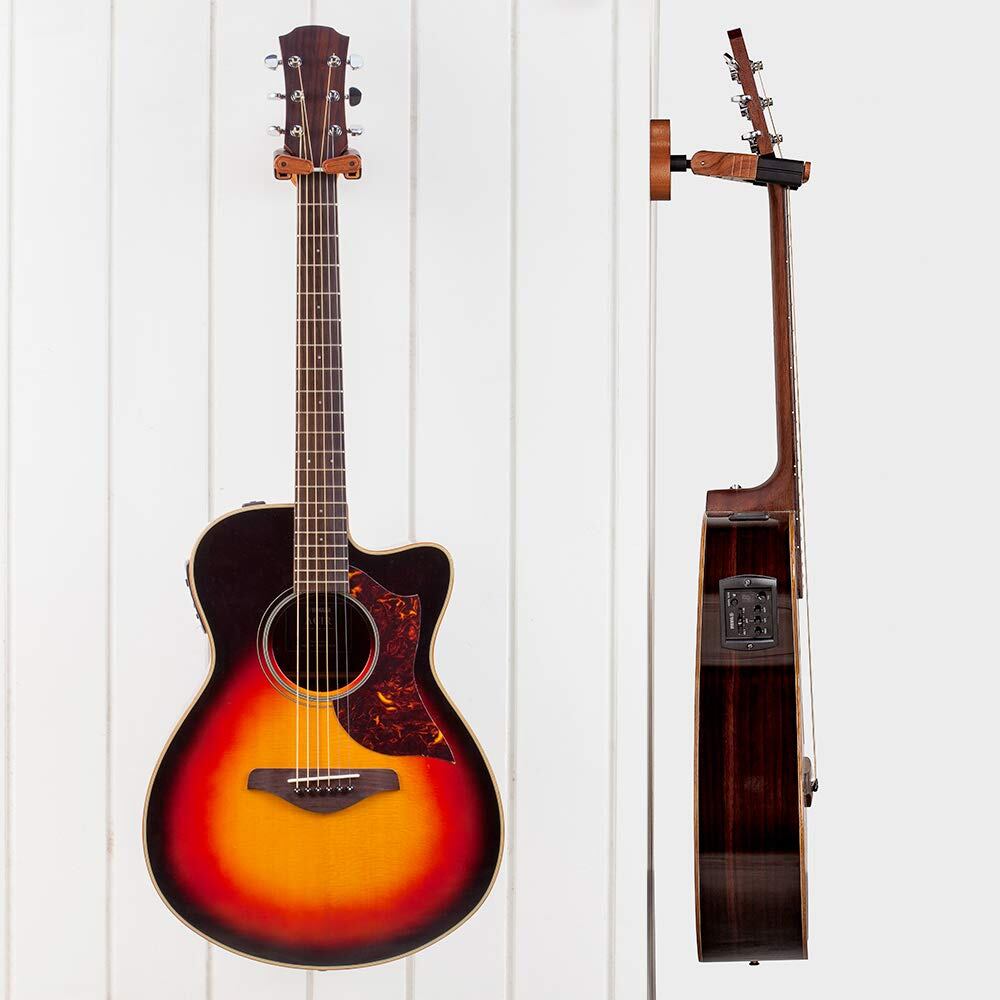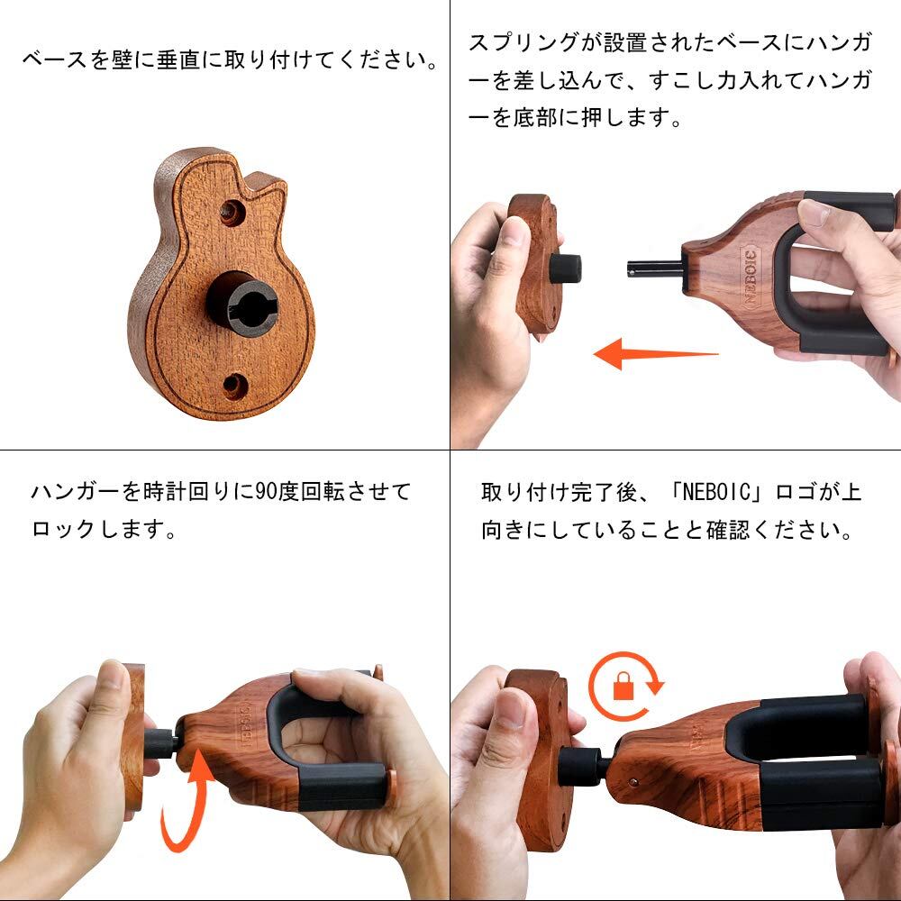 ギターハンガー 壁掛け 自動ロック ギター形状の硬材ベース ギターフック 荷重15KG ギタースタンド アコギ、エレキ、ベース用 取付スクリュー付き