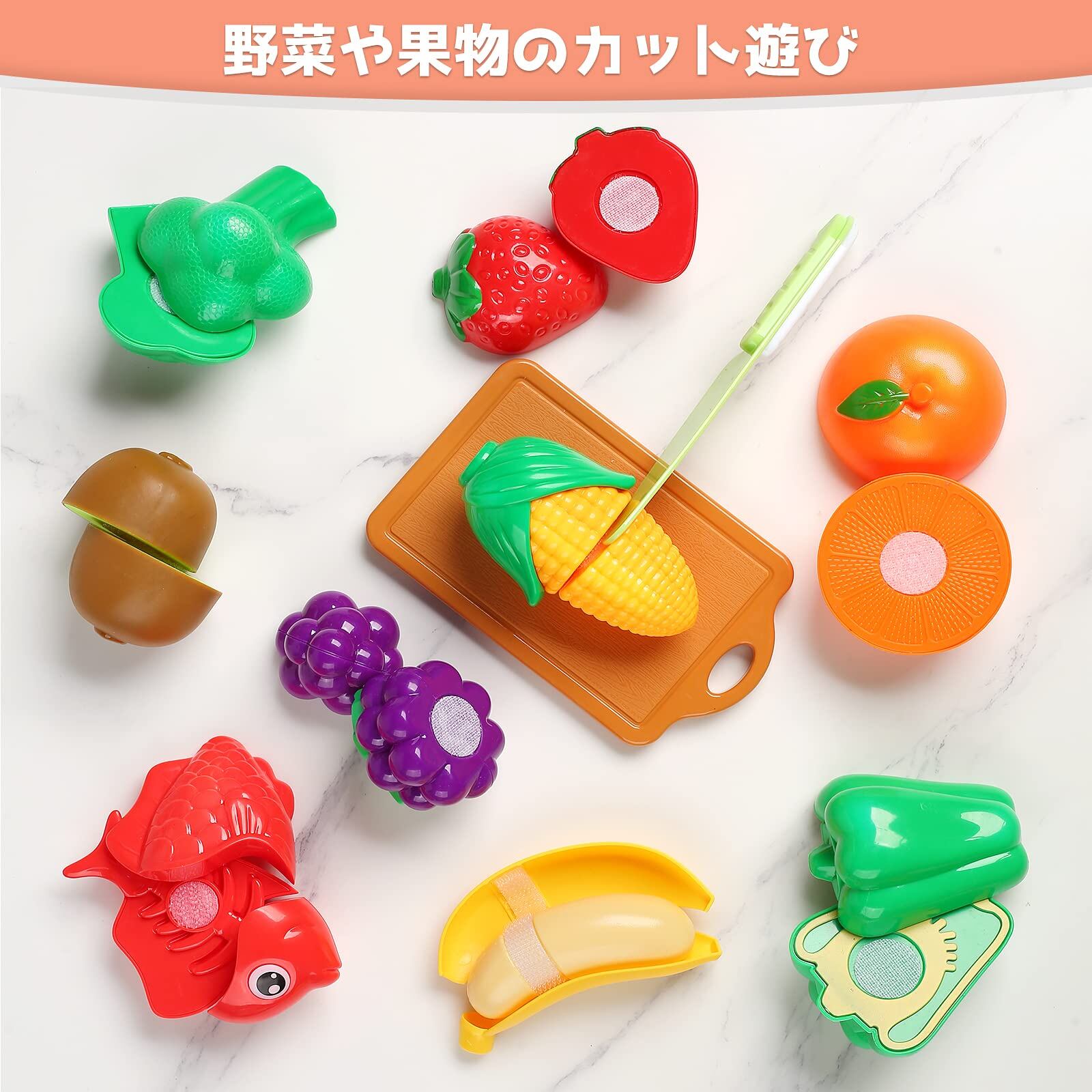 【切って楽しい】とうもろこし、バナナ、魚などのリアルな食材は、安全な環境で切る楽しみを子供たちに体験させることができます。親も子供が一緒に遊ぶことができます。
