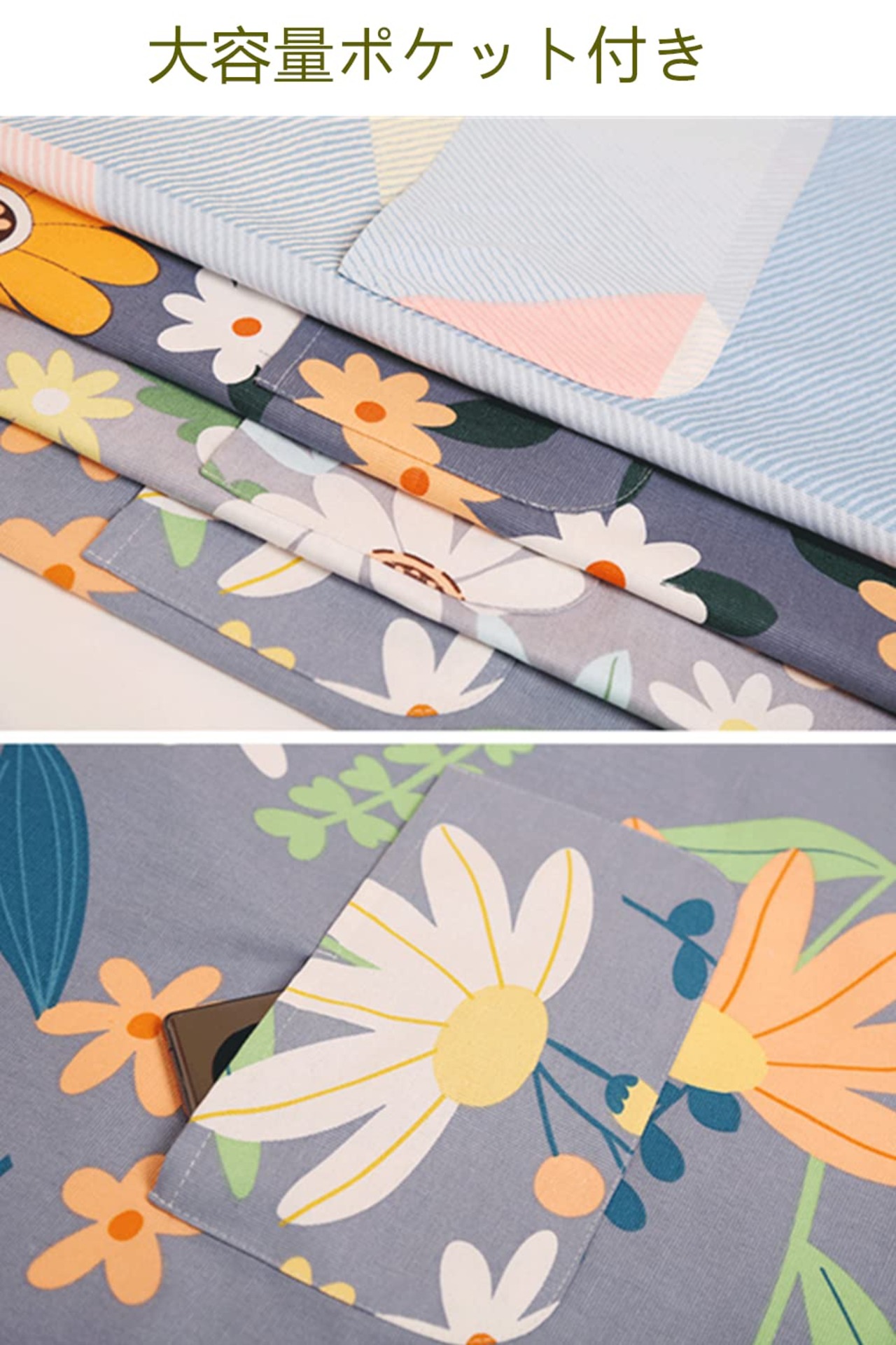 【シンプル花柄】エプロンの外観は非常にスタイリッシュで、北欧風 花柄があるし、大容量ポケット付くし、よく使うものを入れることができます。